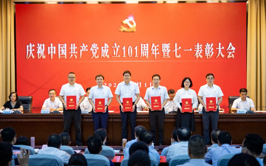 7月1日上午,我校隆重举行庆祝中国共产党成立101周年暨七一表彰大会,会议回顾了党的光辉历程和丰功伟绩,表彰先进集体和优秀个人,教育引导师生党员在奋力谱写高质发展新篇章中再创佳绩。全体在连校领导出席会议,校党委副书记史顺良主持会议。校两委委员、中层干部、党支部书记代表、“光荣在党50年”老党员代表以及受表彰的集体和个人参加了大会。