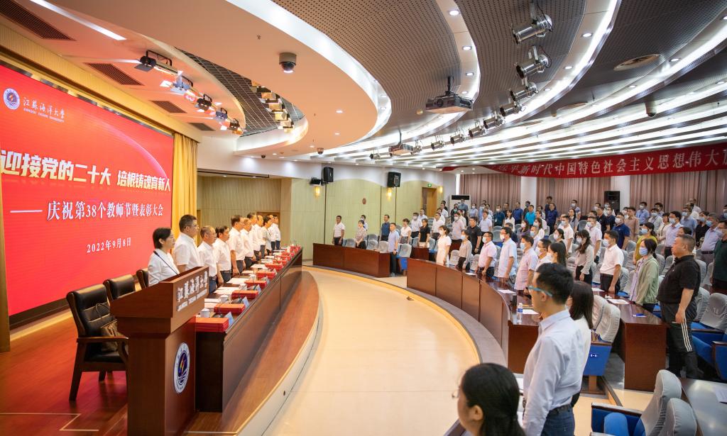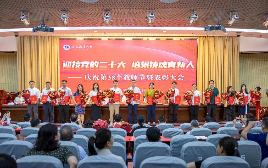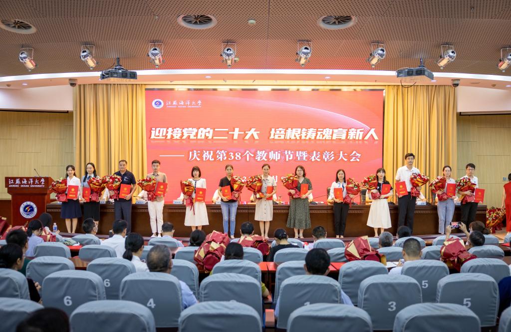 9月8日下午,我校在会议中心黄海厅召开庆祝第38个教师节暨表彰大会。全体校领导出席大会,会议由校党委副书记史顺良主持。受表彰人员、各单位主要负责人、从教满30周年教师代表、新入职教师代表和学生代表参加会议。