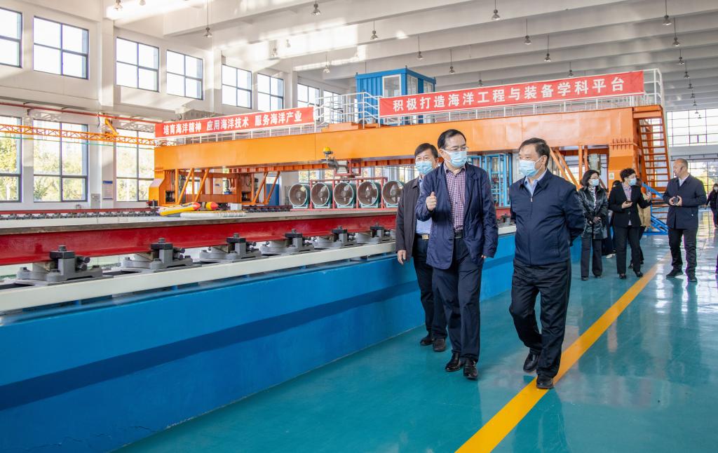 在海洋工程技术研究中心,方韬一行现场察看了该中心为海洋物理、海洋地质、海洋工程等学科方向开展大型试验所提供的空间环境及试验条件,了解了我校在海洋工程技术方面的研究进展。据悉,该中心所提供的试验条件均居国内先进水平。