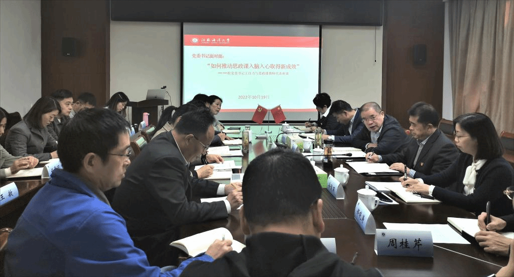 10月19日下午,校党委书记王自力来到马克思主义学院,与思政课教师代表座谈,共话“如何推动思政课入脑入心取得新成效”,党委组织部、党委宣传部、党委办公室、教务处等部门负责人一同参与座谈。
