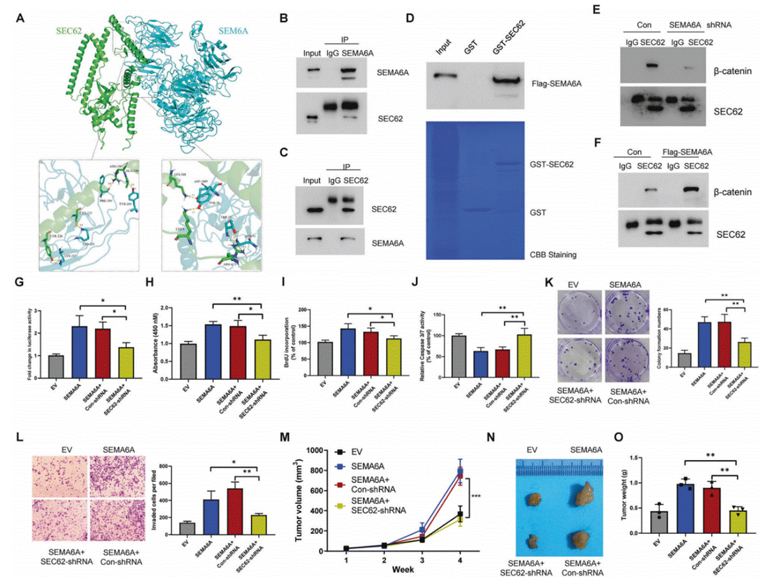 图3 SEMA6A通过增强SEC62-β-catenin相互作用稳定β-catenin