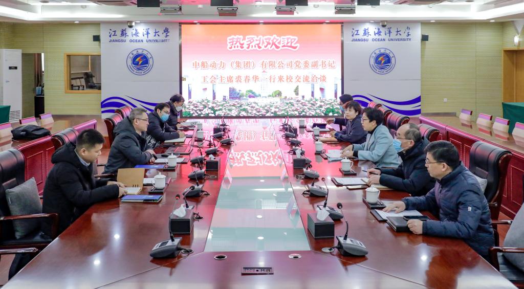 2月16日上午,中船动力(集团)有限公司党委副书记、工会主席裘春华率队到我校调研交流。校党委书记王自力、党委副书记李梅英在会议中心会见了裘春华一行。