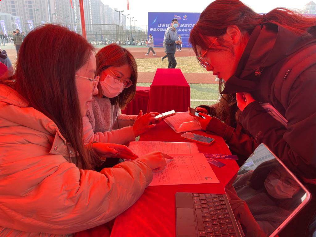 3月4日上午9时,“逐梦新时代,建功新征程”江苏省2023届毕业生春季校园招聘周江苏海洋大学专场招聘会在苍梧校区东操场顺利举行。校党委书记王自力、校长宁晓明、副校长朱国军、连云港市人才服务中心主任林剑锋到现场指导工作。
