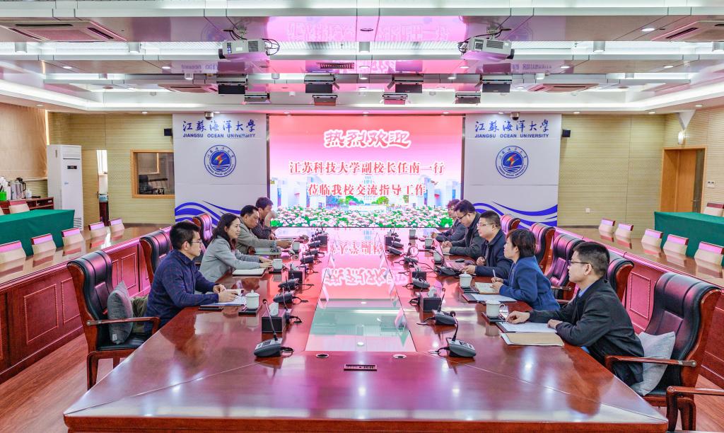 3月7日下午,江苏科技大学副校长任南率队来我校调研交流。校党委书记王自力、副校长朱国军在会议中心会见了任南一行。
