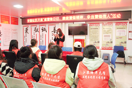 3月4日上午,环境与化学工程学院在秀逸苏杭社区开展了“阳春三月春风暖 雷锋精神代代传”主题活动。志愿者们分为三组,分别进行社区美化、标语粘贴和雷锋精神宣讲。活动期间,志愿者们不怕脏不怕苦,真正做到“有一份光发一份热”。活动以志愿者们集体留影的方式圆满的句号。