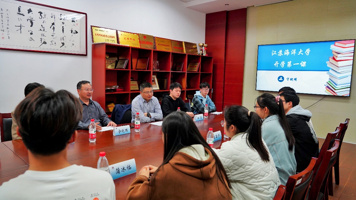 3月10日下午,我校组织开展了一场别出心裁的“开学第一课”,校长宁晓明、副校长朱国军与15名学生代表围坐一桌,以座谈交流的形式面对面进行授课。