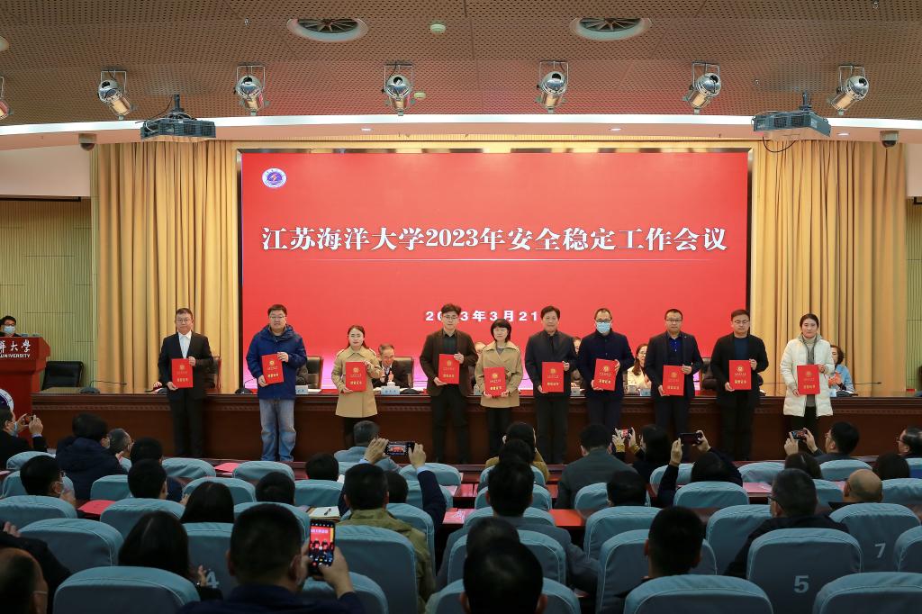 3月21日下午,我校在会议中心黄海厅召开2023年安全稳定工作会议,深入学习贯彻习近平总书记关于安全生产重要论述和对江苏安全生产工作的重要指示批示精神,落实全国安全生产电视电话会议部署和省市相关要求,总结我校2022年安全稳定工作,布置2023年安全稳定重点工作。校领导王自力、宁晓明、陈先宏、金芙蓉、严云洋、朱国军,校党委常委纪延光、杨雪英出席会议,副校长严云洋主持会议。
