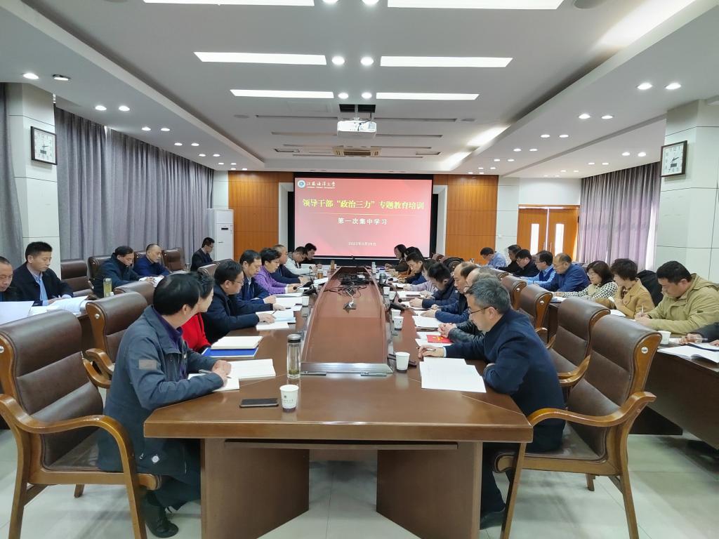 3月28日下午,校领导干部“政治三力”专题教育培训读书班开班并进行第一次集中学习。校党委书记王自力在第一学习小组作开班动员。校领导李梅英、陈先宏、金芙蓉、郑利军分别在第二、三、四、五学习小组作开班动员。全体在连校领导、中层干部170余人参加了小组集中学习研讨。