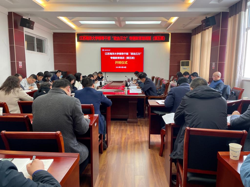 王自力指出,今年是学校奋进博士学位授予单位建设的攻坚之年,校党委将开展领导干部“政治三力”专题教育培训列为今年的一项重点工作,目的就在于引导全校领导干部进一步深刻领会习近平新时代中国特色社会主义思想的核心要义,不断提高政治判断力、政治领悟力、政治执行力,着力培养忠诚干净担当的高素质干部队伍。“政治三力”专题教育以提升领导干部政治能力为突破口,通过系统性的培训进一步提升领导干部履职尽责能力,引导全校领导干部始终做到与党中央重大决策部署和学校事业发展任务对标对表,聚焦学校高质量发展主题,以更加奋发有为的状态推进学校“向海”转型和博士学位授予单位创建。