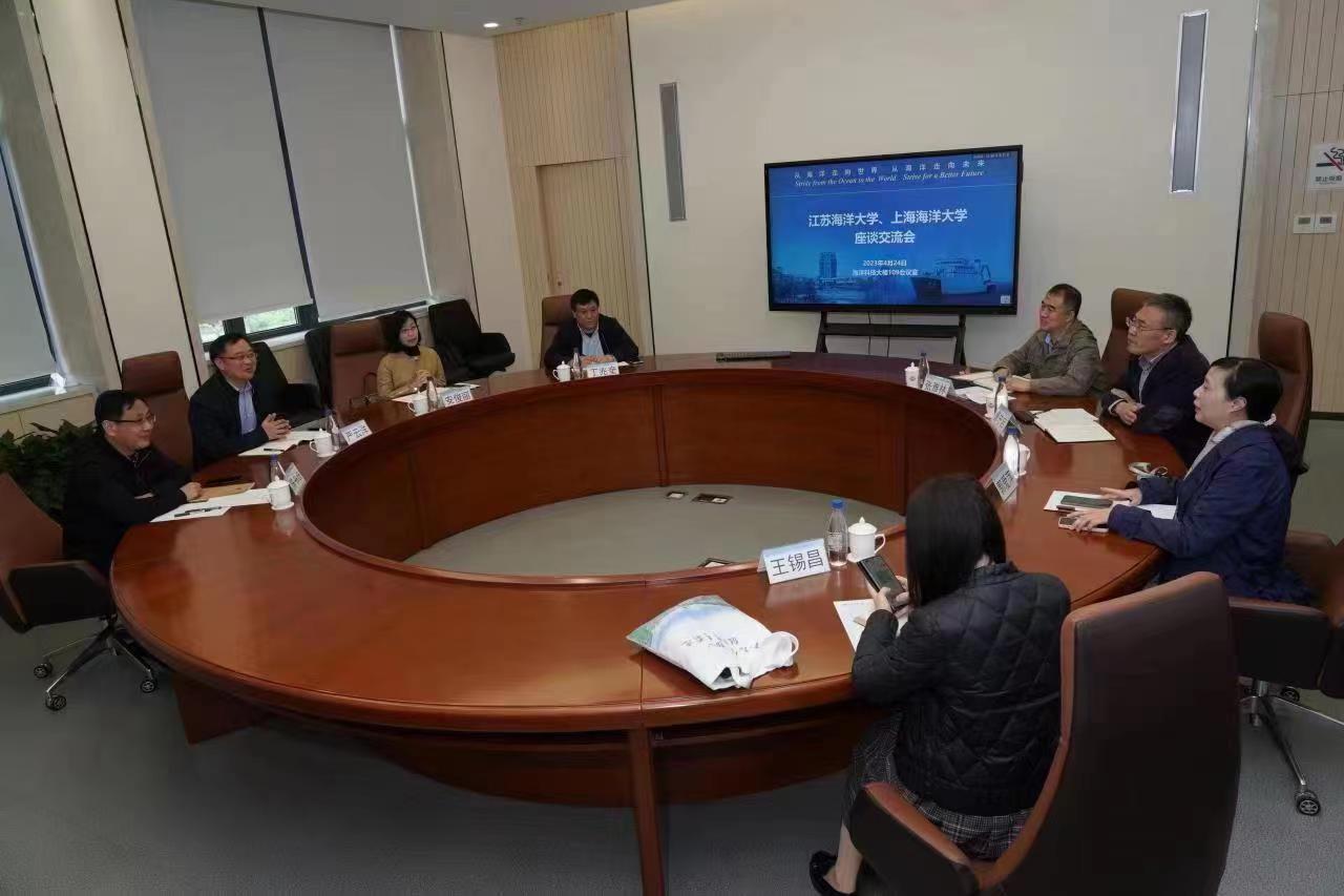 为深入贯彻落实习近平新时代中国特色社会主义思想主题教育调查研究的有关要求,学习兄弟高校先进做法和经验,推动学校高质量发展,4月24日上午,校长宁晓明,副校长金芙蓉、严云洋等一行9人赴上海海洋大学进行交流调研。上海海洋大学校长万荣、党委副书记宋敏娟、总会计师郭爱萍、党委常委、宣传部部长郑卫东等会见宁晓明一行,并在临港校区海洋科技大楼一楼会议室举行座谈会。