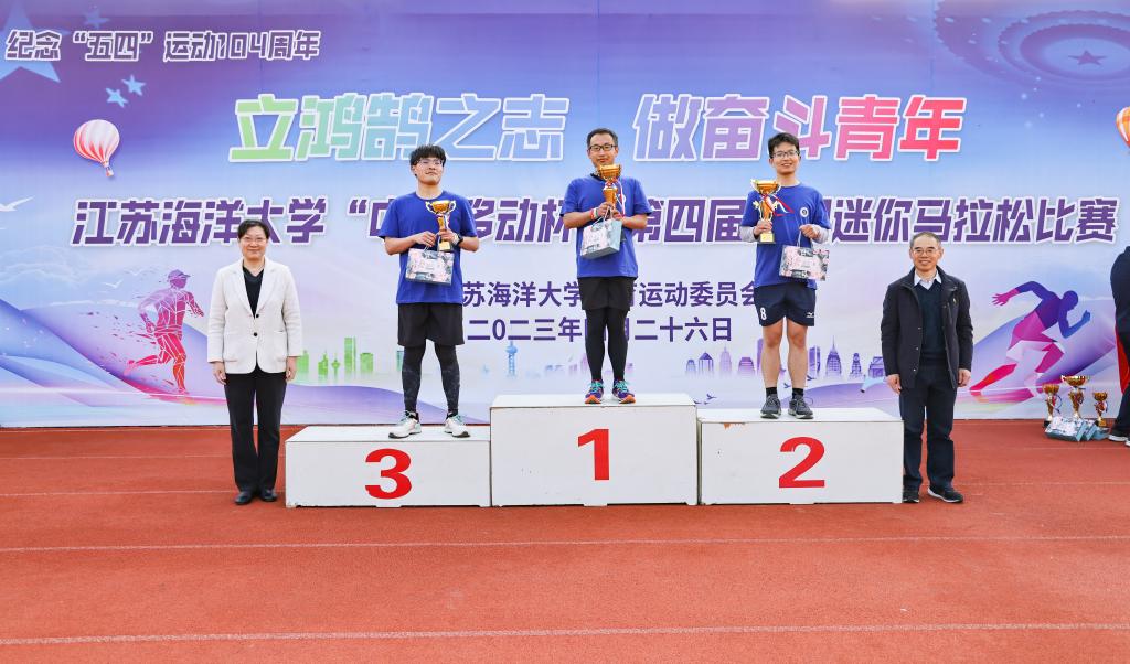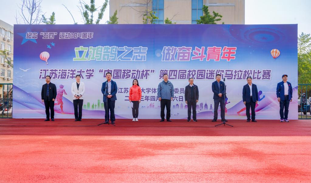 4月26日下午,江苏海洋大学第四届“立鸿鹄之志,做奋斗青年”校园迷你马拉松开跑。校领导宁晓明、陈先宏、金芙蓉、严云洋、朱国军及中国移动连云港分公司副总经理姜田先出席了开幕式,开幕式由严云洋主持,金芙蓉致开幕词。