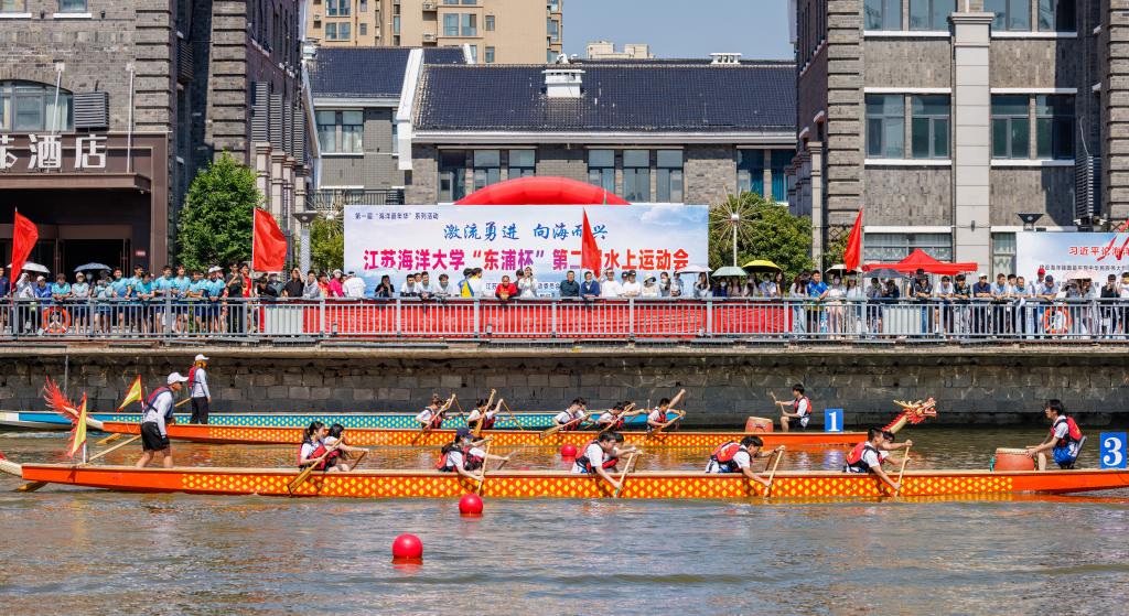6月14日下午,我校在苍梧校区东盐河举行“激流勇进 向海而兴”东浦杯第二届水上运动会。校党委书记王自力、校长宁晓明、党委副书记李梅英、副校长郑利军、副校长申欣、江苏东浦管桩股份有限公司党委书记谭学立出席开幕式,开幕式由副校长严云洋主持。