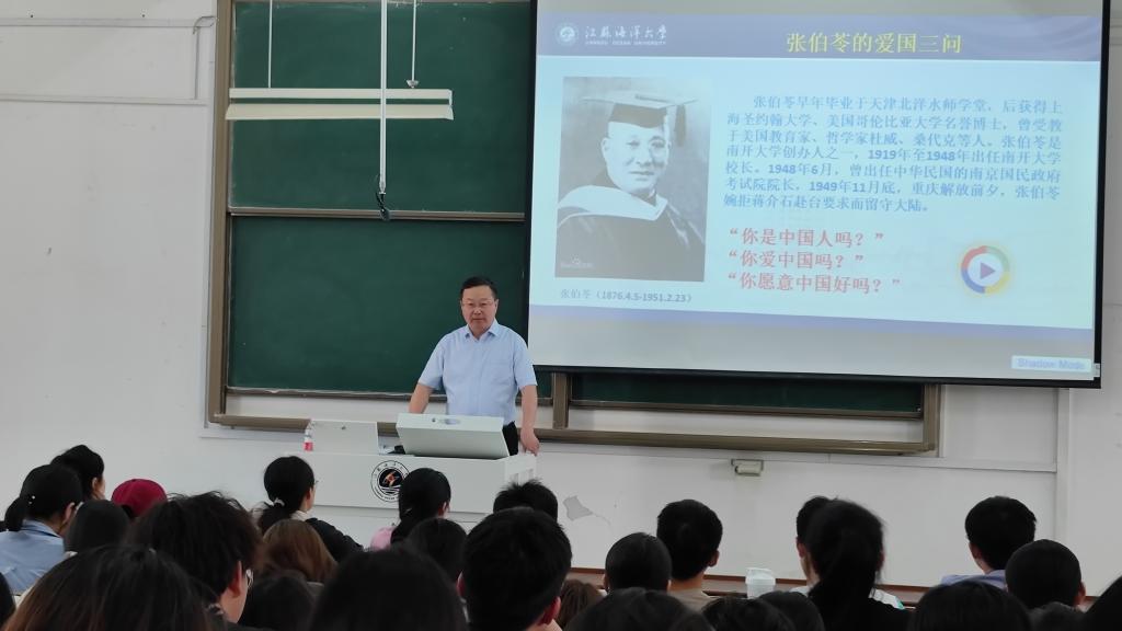 校长宁晓明走进《思想道德与法治》的课堂,以“爱国”为主题,依托鲜活的案例,强化同学们的爱国意识,领悟新时代“爱国”的深刻内涵,勉励同学们友善待人、团结同学,强化道德修养、树立正确的价值观,做新时代好青年。