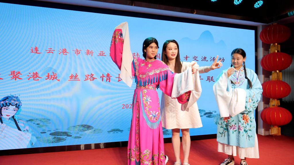 演出期间,连云港市演艺集团青年演职人员还现场教授外国师生穿戏服及简单戏曲招式,带领外国师生们亲身体验中国传统戏曲文化的独特魅力。