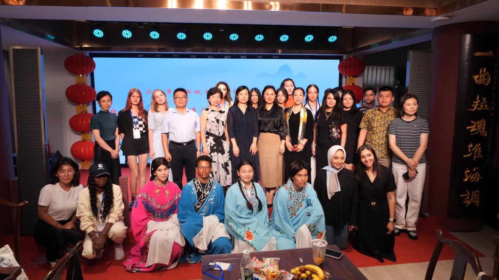 7月31日,我校联合连云港市演艺集团在盐河巷“连云港腔调”小剧场共同举办了欢聚港城丝路情长——中外青年联欢活动,连云港市文化广电旅游局副局长张文艳、非物质文化遗产处处长王源远、连云港市演艺集团董事长、党总支书记谢春芳、我校国际交流与合作处全体人员、连云港市新亚欧大陆桥国际人才交流活动学员及带队教师参加活动。