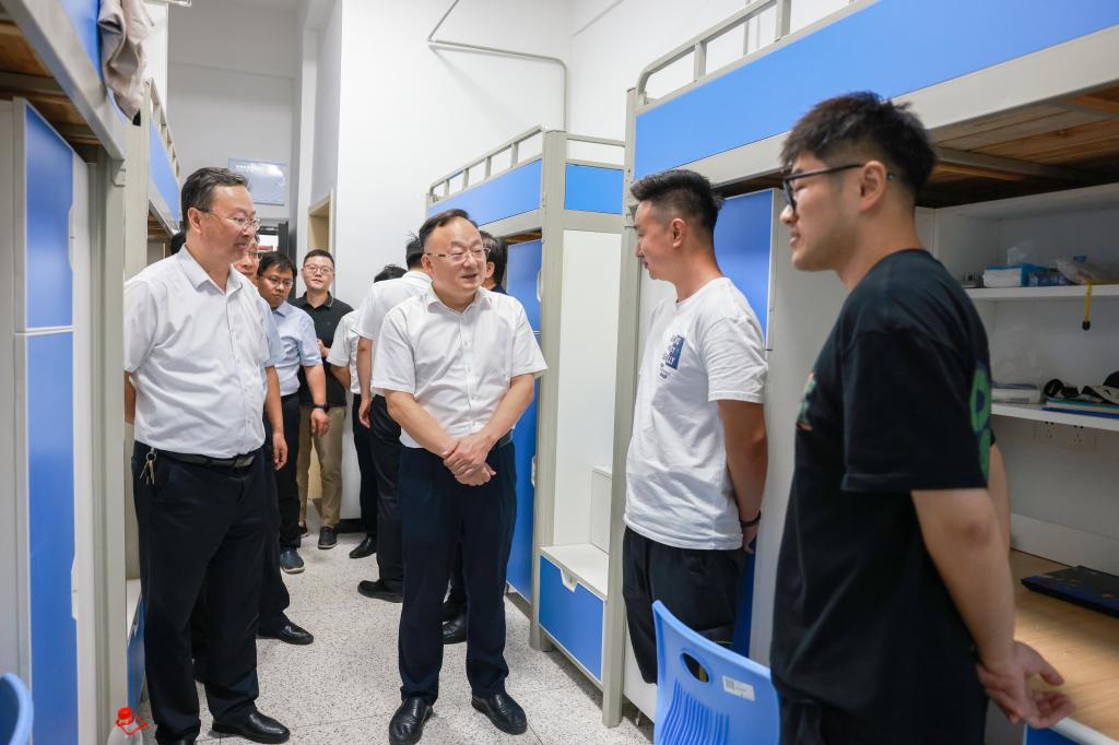 杨树兵一行深入走访了新生入学报到现场和学生心理中心,并对苍梧校区学生宿舍、食堂等重点场所进行了实地考察,详细了解学校开学工作、校园安全管理、教育教学开展情况,全面检查了学生开学报到的各项工作保障情况。调研过程中,他仔细察看了宿舍生活设施,食堂菜品种类和价格,详细询问了宿舍管理、水电供应安全等问题,并与在场学生进行了亲切交谈,询问他们的生活和学习情况,希望他们合理安排好学习和生活,做好学习规划,以积极的态度、崭新的面貌投入到新学期的学习与生活中来。