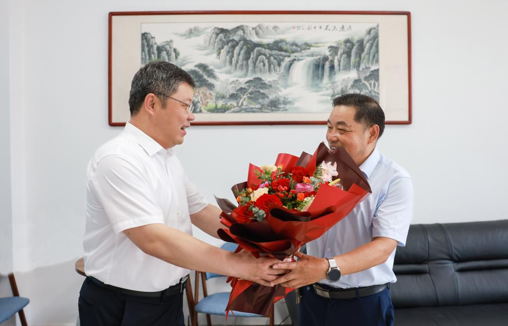 在海洋技术与测绘学院和商学院,许峰详细询问了焦明连、张应语两位教授的工作、生活状况,了解他们的科研方向、重点研究领域,倾听他们的教学感悟和对学校各项工作的意见建议,并深入探讨科研成果持续转化等问题。