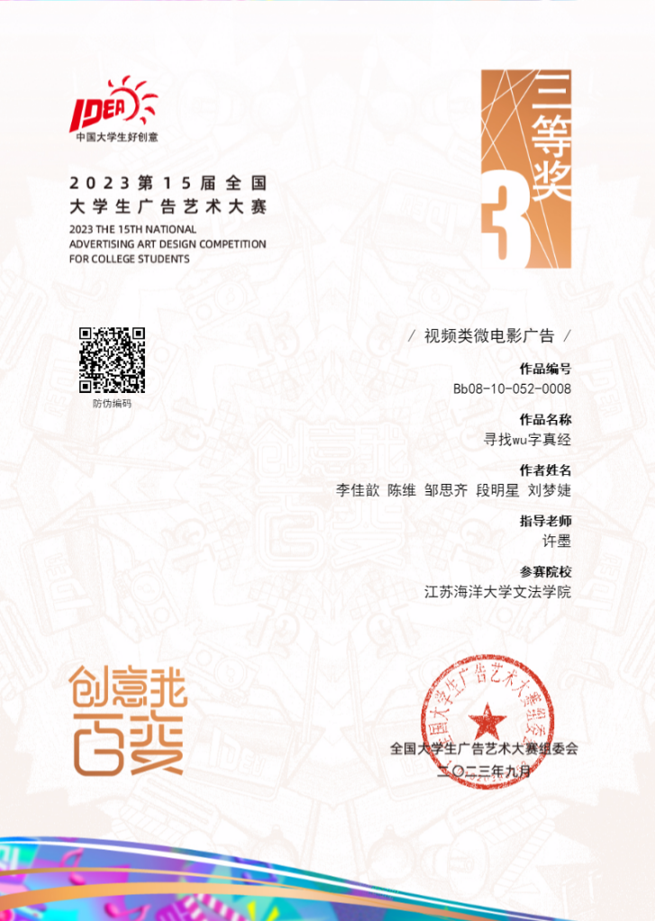 2023年由文法学院组织,艺术设计学院和商学院组队参赛,我校获国家级二等奖1项、三等奖3项、优秀奖6项。