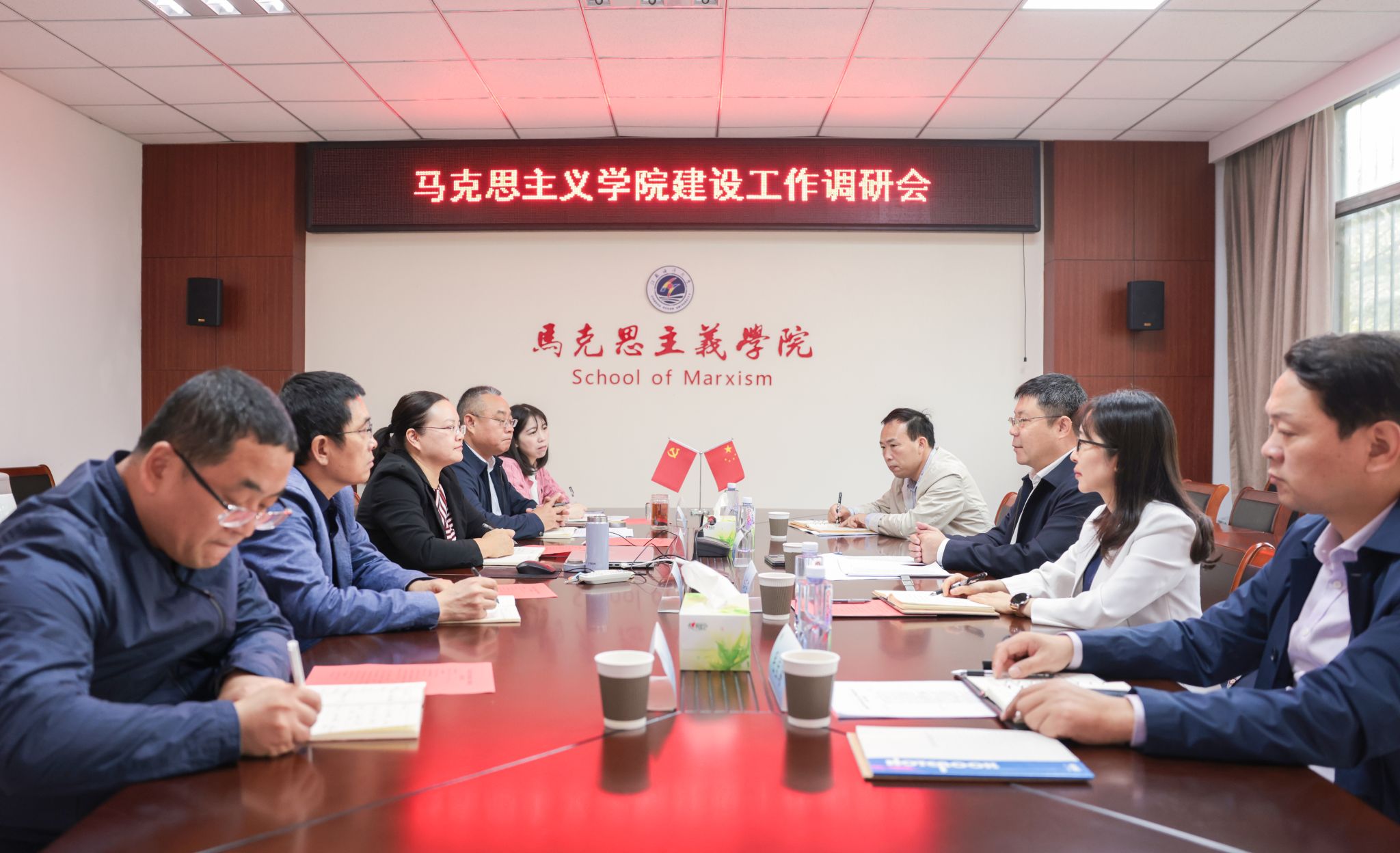 校党委常委、党委宣传部部长王波,校党委常委、党委统战部部长、党委办公室主任、校长办公室主任毛宝海陪同调研。马克思主义学院班子成员、部分教研室主任、党支部书记参加调研会。