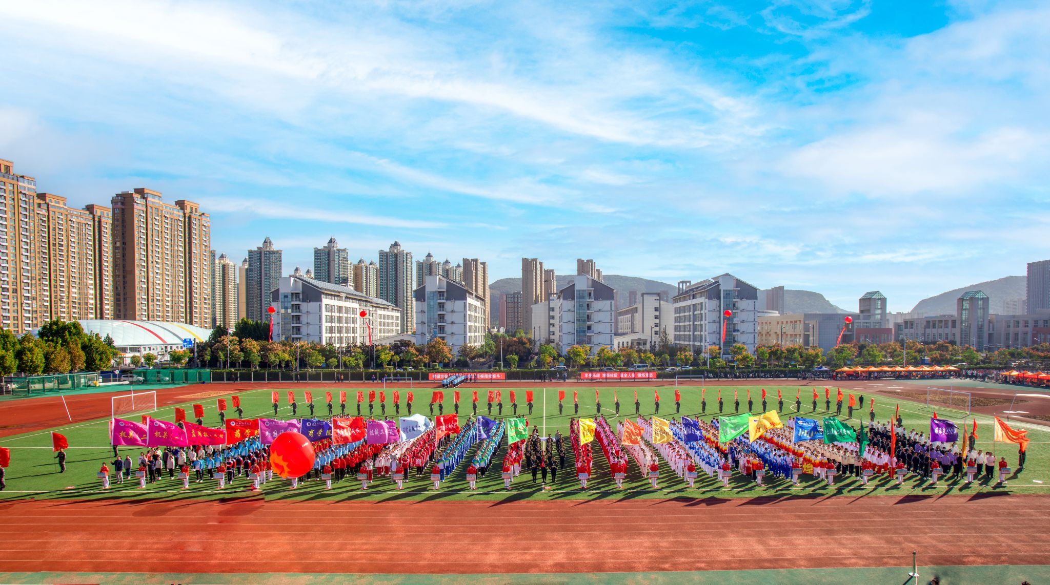 表演结束后,在国旗护卫队的引领下,包括各学院、各职能部门在内的25个方阵依次入场,他们迈着矫健的步伐接受主席台的检阅,意气风发,斗志昂扬。