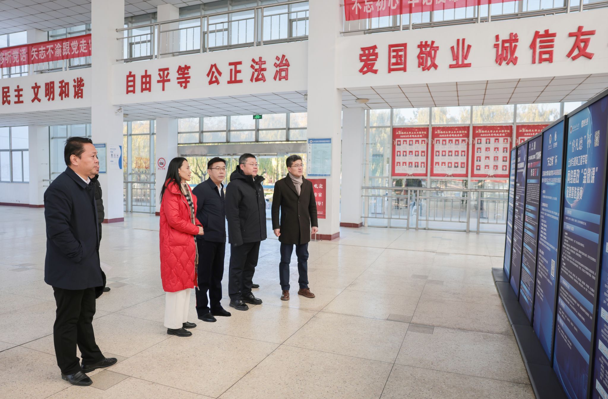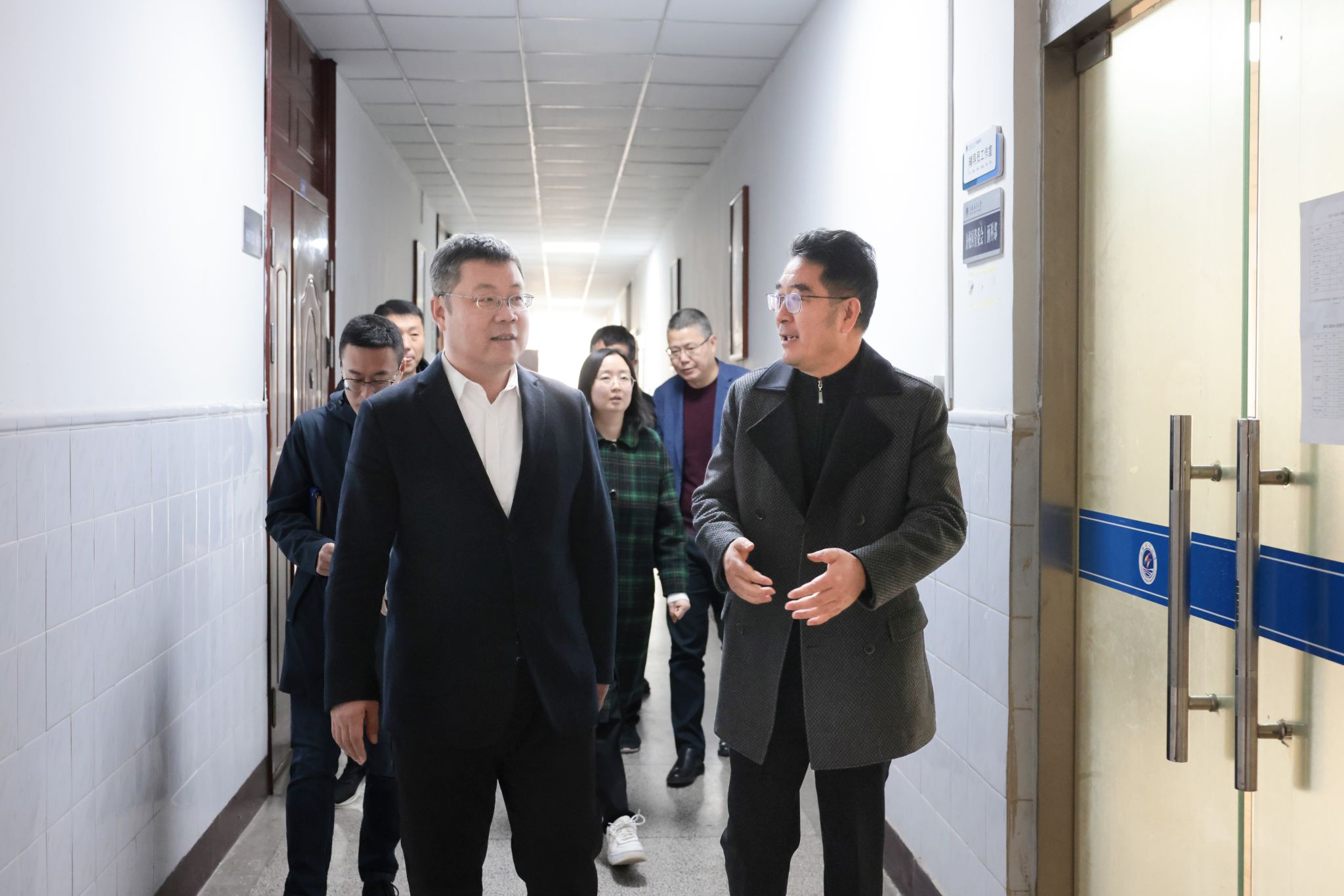 在土木与港海工程学院、文法学院,许峰走访了教职工实验室、办公室、学生竞赛工作室,考察了模拟法庭、新媒体演播厅等演示平台,与学院党政领导、教职工、学生深入交流,详细了解了大学生学科竞赛的参赛、获奖情况,重点听取了工程结构智能建造与安全运维研究中心、海洋检察研究院、MPA教育中心的基本情况和发展目标的汇报。