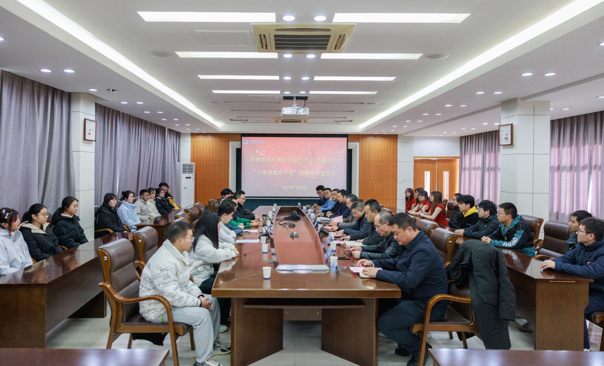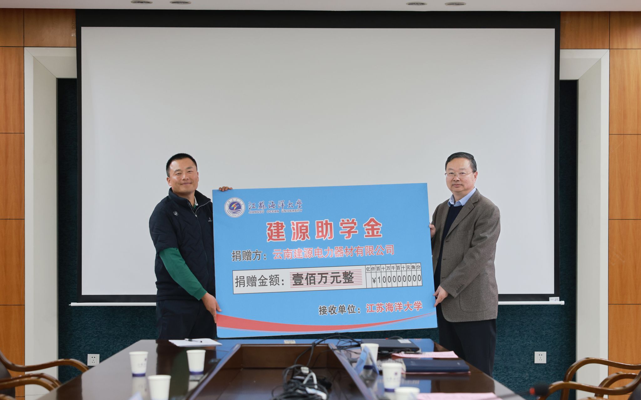 12月6日下午,云南建源电力器材有限公司—江苏海洋大学“云南建源助学金”捐赠暨颁发仪式在文渊楼会议室举行。校长宁晓明出席仪式,我校商学院管理012班校友、云南建源电力器材有限公司董事长陈威,总经理助理张亚卡,学生工作处、校友工作处、商学院、计算机学院相关领导及老师,以及首批四十名获助学生参加活动。副校长朱国军主持仪式。