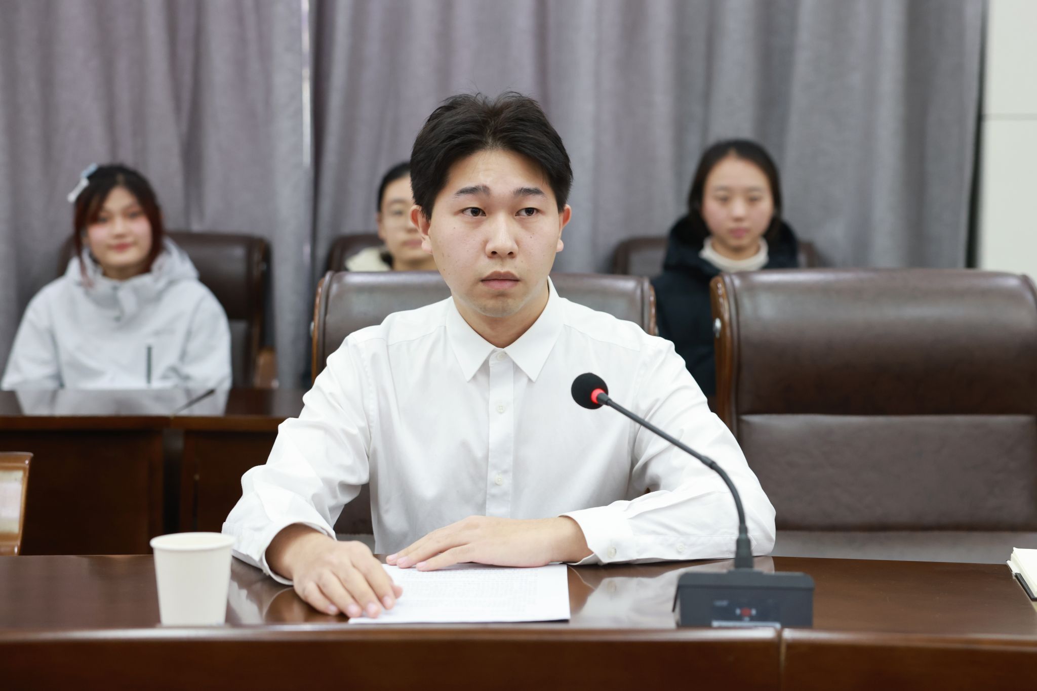 商学院王柏淇同学代表受助学生发言。他对陈威学长表示感谢,号召受助同学们承接爱心接力棒,刻苦努力,懂得感恩,坚定学习目标,拼搏向上,不辜负社会和学校的期望。