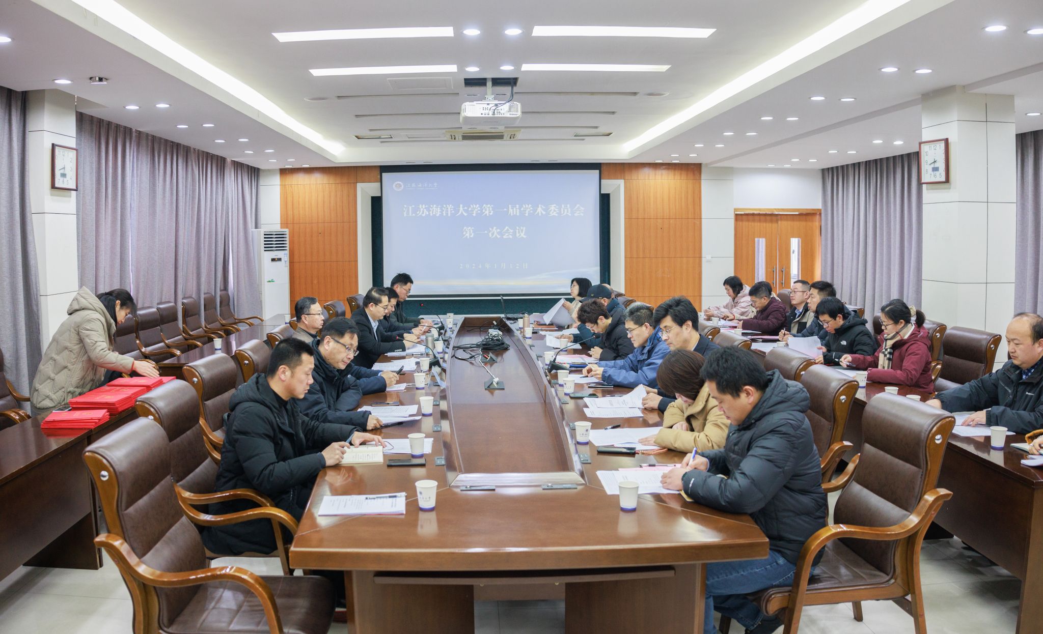 1月12日,江苏海洋大学第一届学术委员会第一次会议在文渊楼二楼会议室召开。校长宁晓明,副校长申欣、马廷淮、徐军田出席会议,校新一届学术委员会委员,党委组织部部长、研究生院院长陈书法以及研究生院、马卡洛夫海洋工程学院有关负责人参加会议。科学技术处处长戴红伟主持会议。