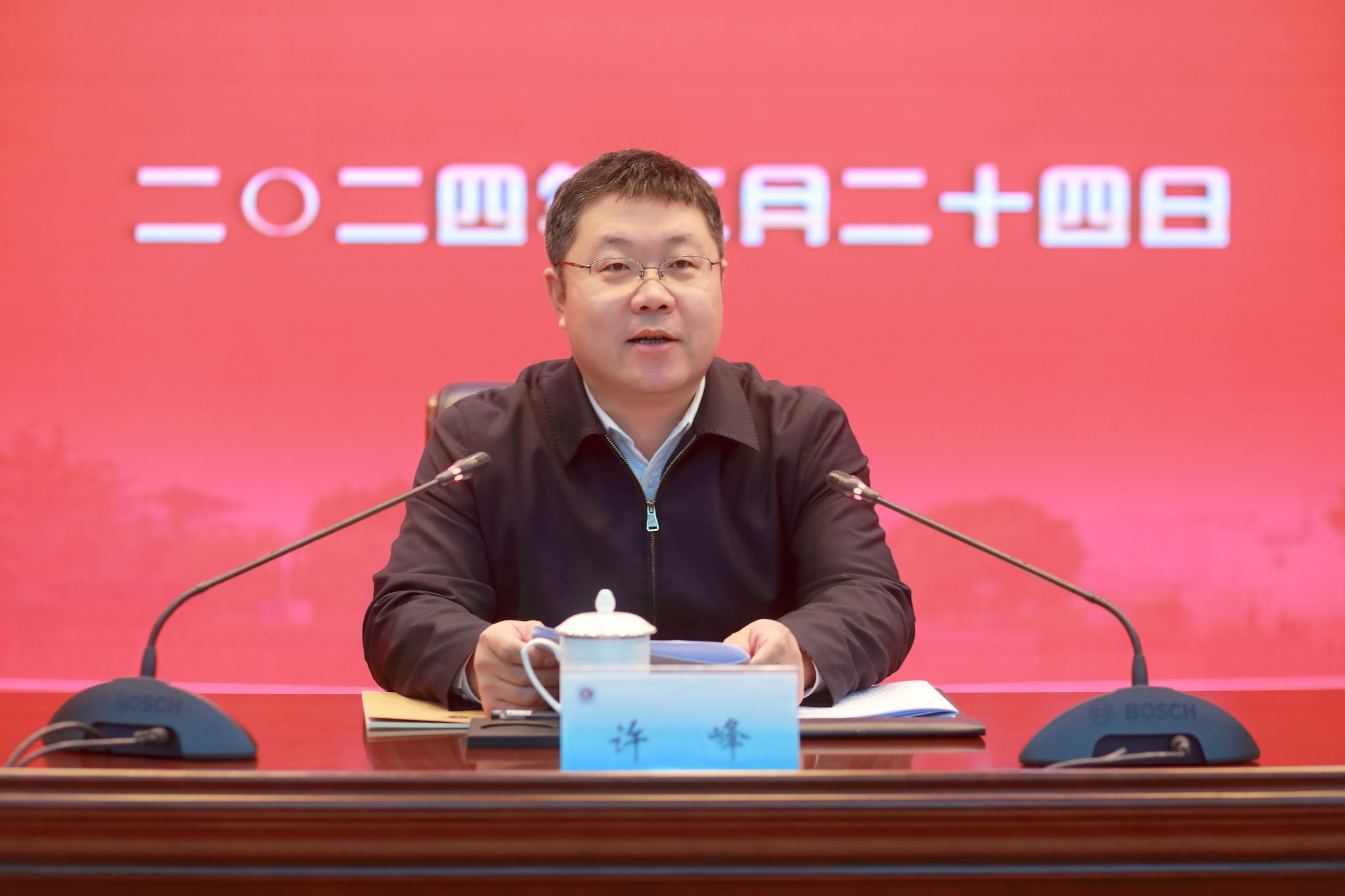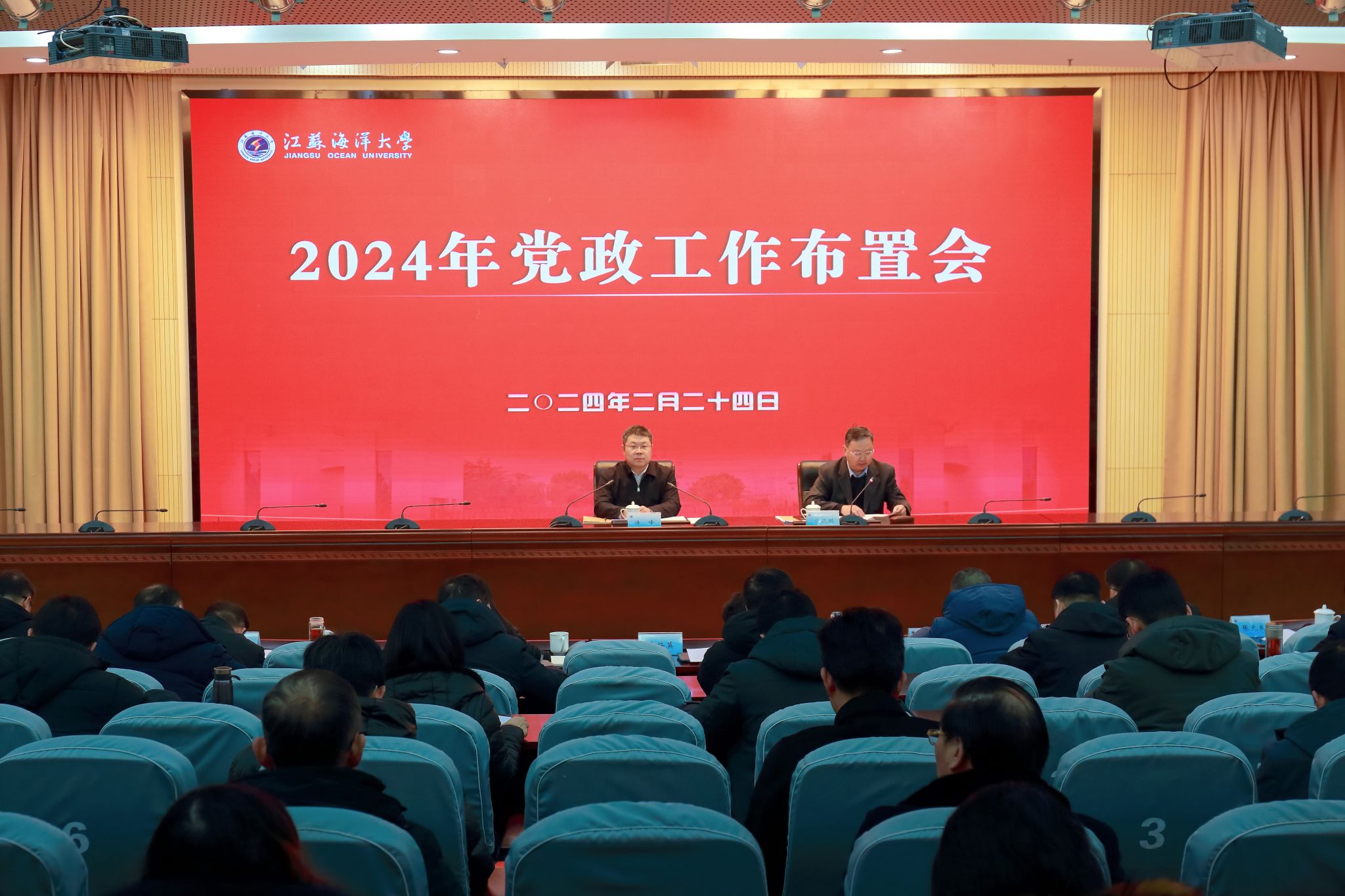 2月24日上午,我校2024年党政工作布置会在会议中心黄海厅召开。校党委常委、全体校领导出席会议。校党委书记许峰主持会议。全体中层干部参加会议。