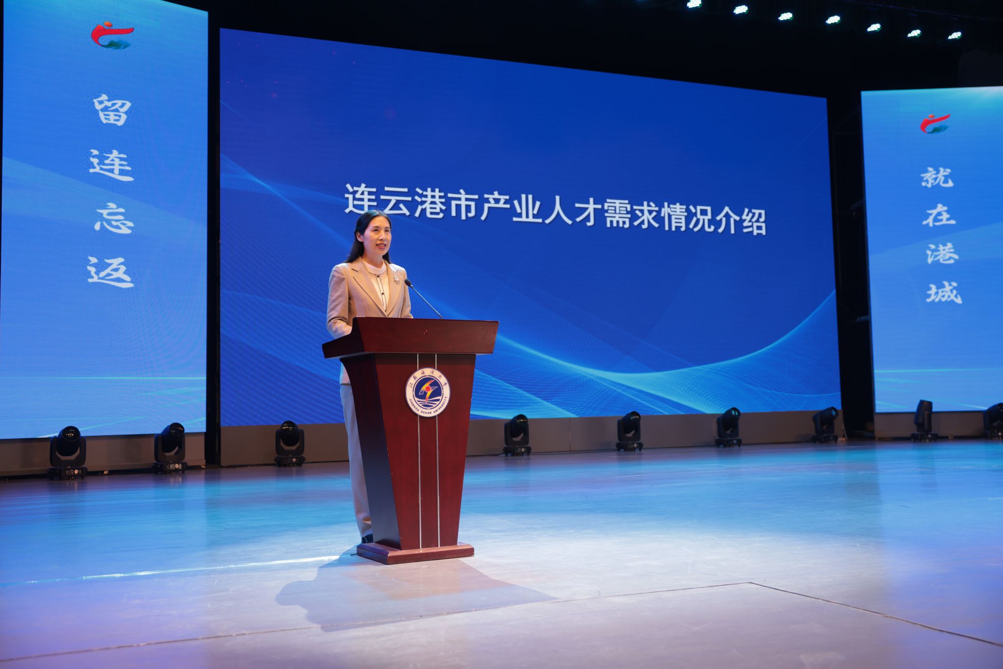 连云港市人力资源和社会保障局副局长张建慧介绍了连云港市产业发展和人才需求情况。