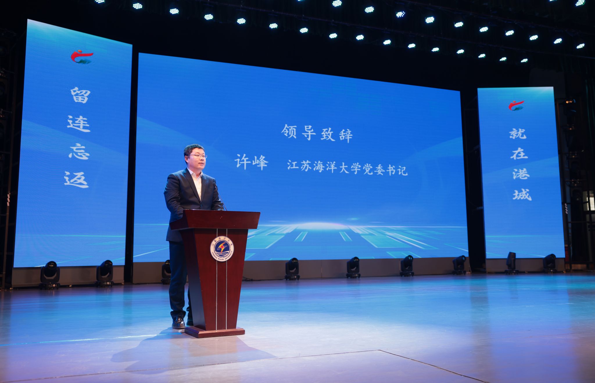 许峰致辞,他代表学校对参加本次活动的领导及来宾表示欢迎,向市委、市政府以及社会各界长期以来对学校事业发展的关心和支持表示感谢。许峰表示,作为在连高校,我校将与其他兄弟高校一道,持续加强与市委市政府和企事业单位的交流合作,积极构建政校企合作长效工作机制,在招生就业、人才培养、成果转化、科学研究等方面做好对接、深化交流、强化合作,促进政校企三方合作共赢、协同发展,共享逐梦深蓝的时代机遇,共创中国式现代化连云港新图景。