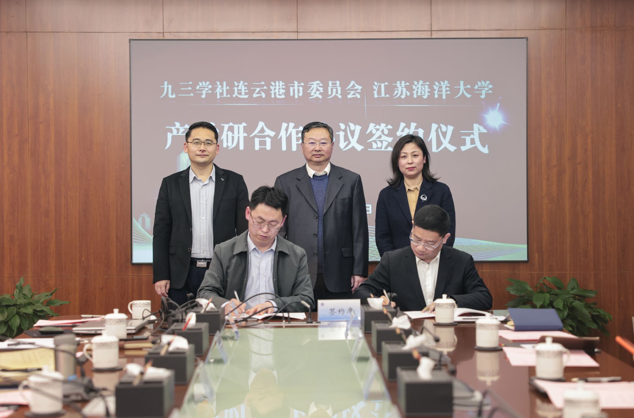 3月27日下午,我校与九三学社连云港市委员会产学研合作签约仪式在行政楼五楼会议室举行。九三学社连云港市主委、连云港市医疗保障局局长杨光,九三学社连云港市副主委、市科学技术局副局长郑刚,我校校长宁晓明、副校长申欣出席。副校长申欣主持签约仪式。