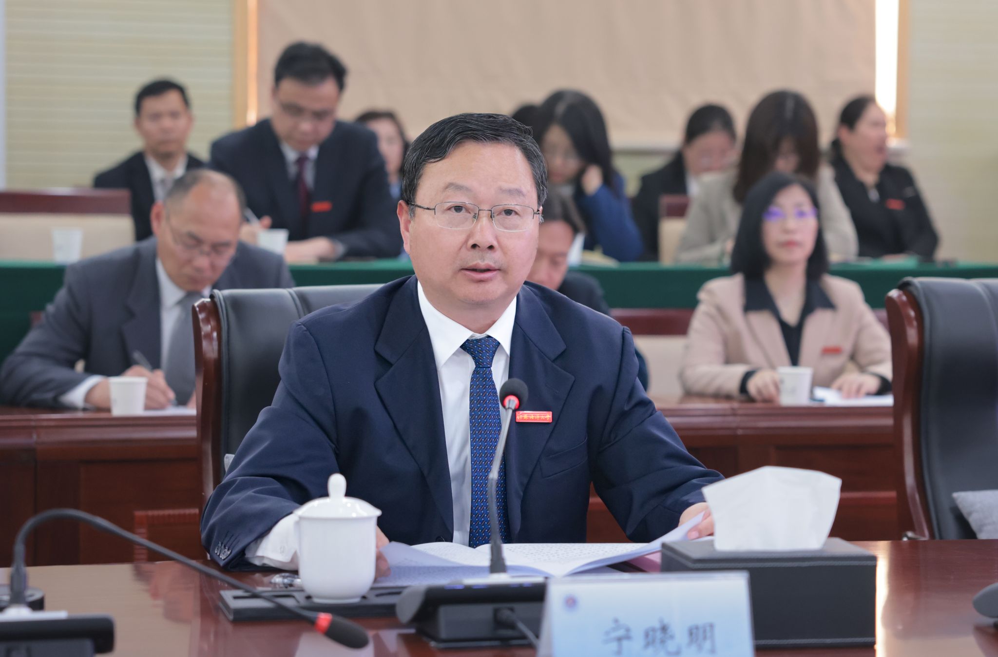 校长宁晓明结合审核评估自评报告作补充说明。宁晓明表示,自启动新一轮审核评估工作以来,学校围绕立德树人根本任务,积极构建高质量本科教育教学体系,开展了多方面工作,取得了新进展。一是以质量立本,聚焦聚力立德树人根本任务。聚焦本科人才培养,持续强化教育教学改革、专业建设和师资队伍建设,全员育人能力和人才培养质量实现了稳中有进、持续向好。二是以改革提质,落细落实审核评估工作要求。坚持以评促建、以评促强,开展自评、自建、自改工作,不断加强本科内涵建设,着力推动本科教育教学高质量发展。三是以特色求进,全面提升办学治校能力水平。以“四个服务”为办学治校的着力点,以江苏沿海高质量发展需求为导向,坚持以“海洋+”“融合+”打造办学特色、提升育人质量。