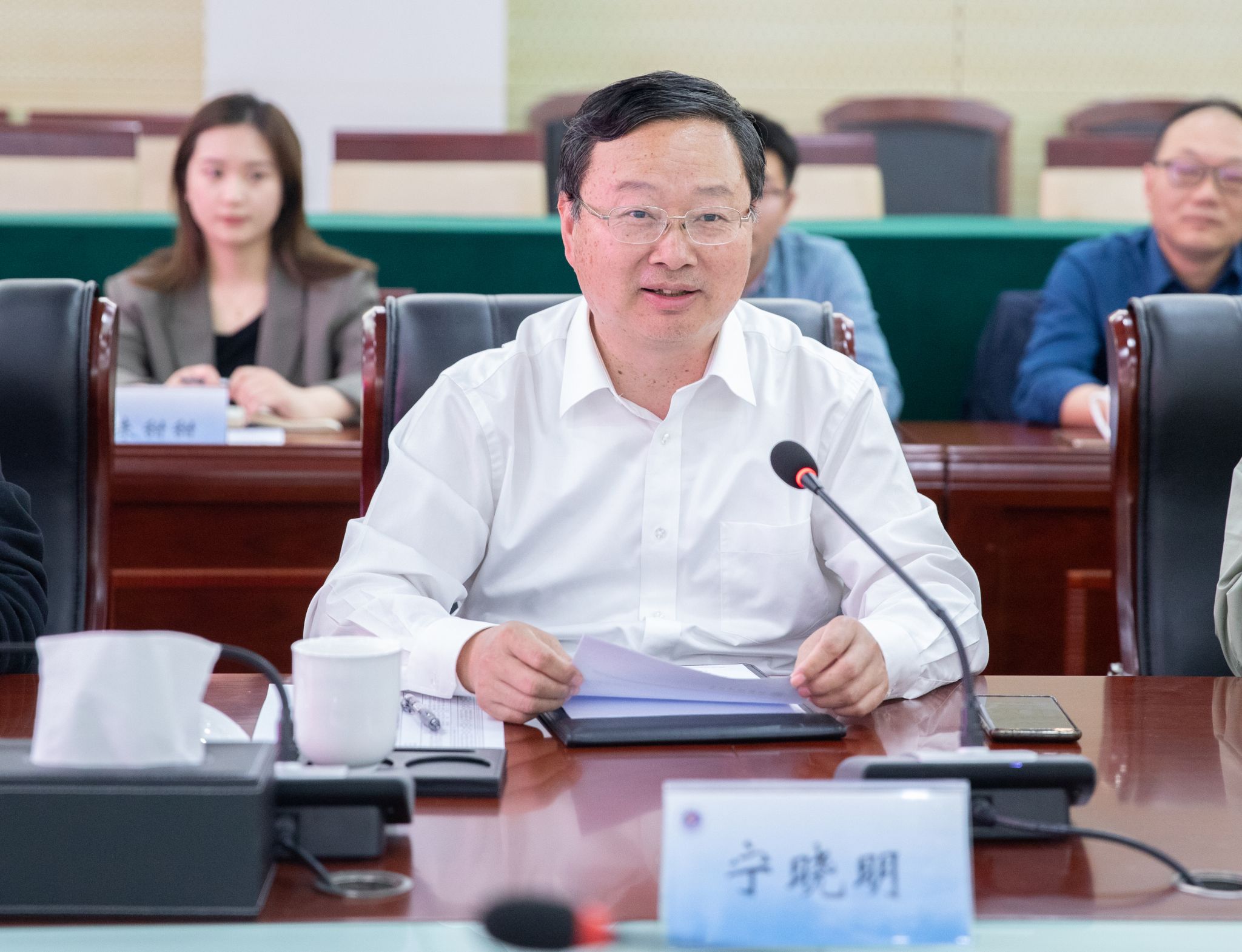 宁晓明代表连云港校友对叶芃一行表示欢迎,并对母校未来发展的美好愿景表示祝福。他介绍了我校近年来在学科建设、师资队伍建设、人才培养及科技创新等方面的最新进展及取得的显著成效,并介绍了校友会工作基本情况。他表示,学校近年来积极响应海洋强国战略,对接海洋强省建设需求,主动服务沿海高质量发展,坚持“四海”服务面向,持续深化向海转型,加快学科内涵式发展,不断提升人才培养质量。宁晓明强调,学校召开第一次党代会后,作出了新的“三步走”战略,并将一流应用型本科高校建设、博士学位授予单位建设作为当前的重点任务,有力驱动学校高质量发展迈上新台阶。学校也将以当前新一轮本科教育教学审核评估为契机,持续巩固本科教育教学核心地位,奋力谱写高水平应用研究型海洋大学建设新篇章。