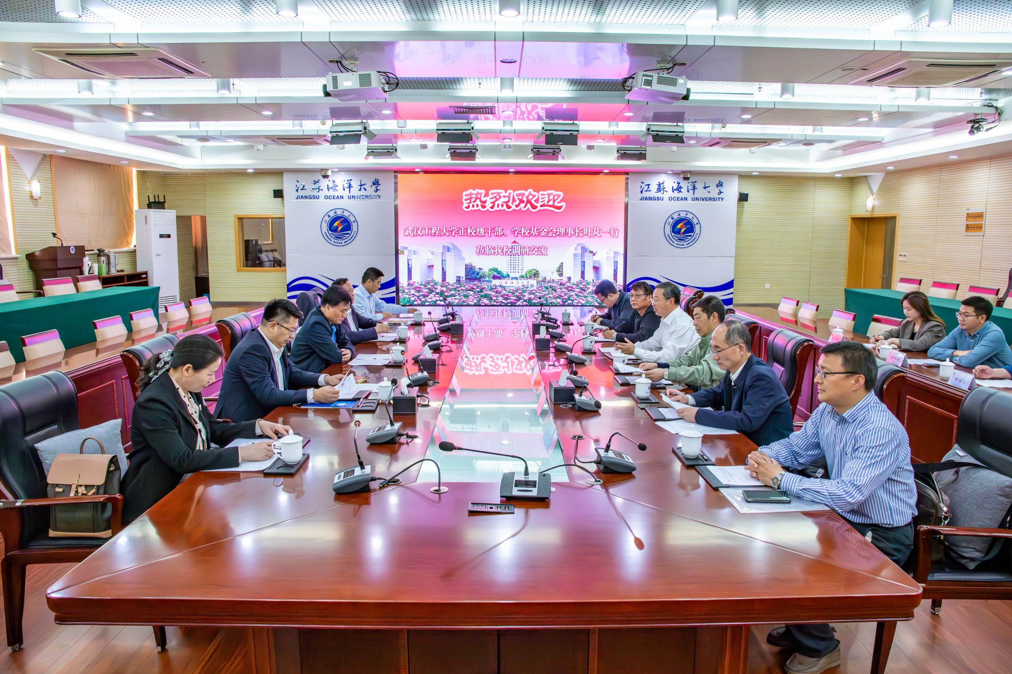 双方共同观看江苏海洋大学最新宣传片《风从江海来》。