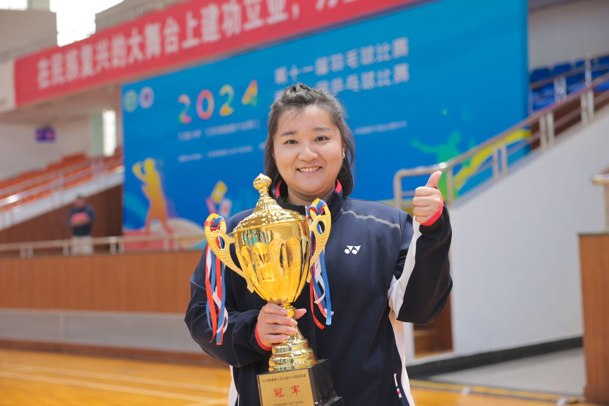 4月21日上午,本届比赛举行闭幕式暨颁奖仪式,仪式由蒋志勇主持。闭幕式上,省船协副会长薛扬,我校副校长、省船协副会长郑利军分别为羽毛球、乒乓球前八名代表队、最佳运动员颁发奖杯。