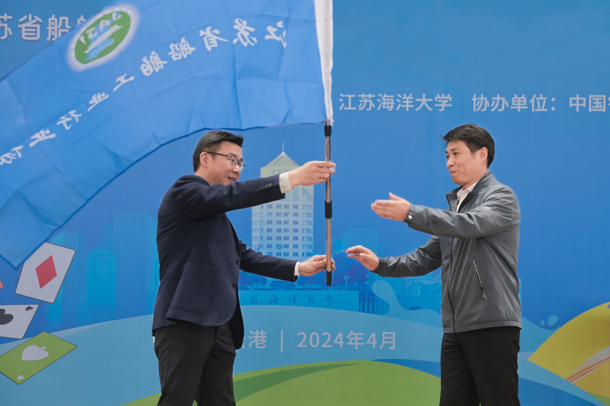 闭幕式后举行了会旗交接仪式。2025年江苏省船舶行业职工体育比赛将在江苏海事职业技术学院举行。