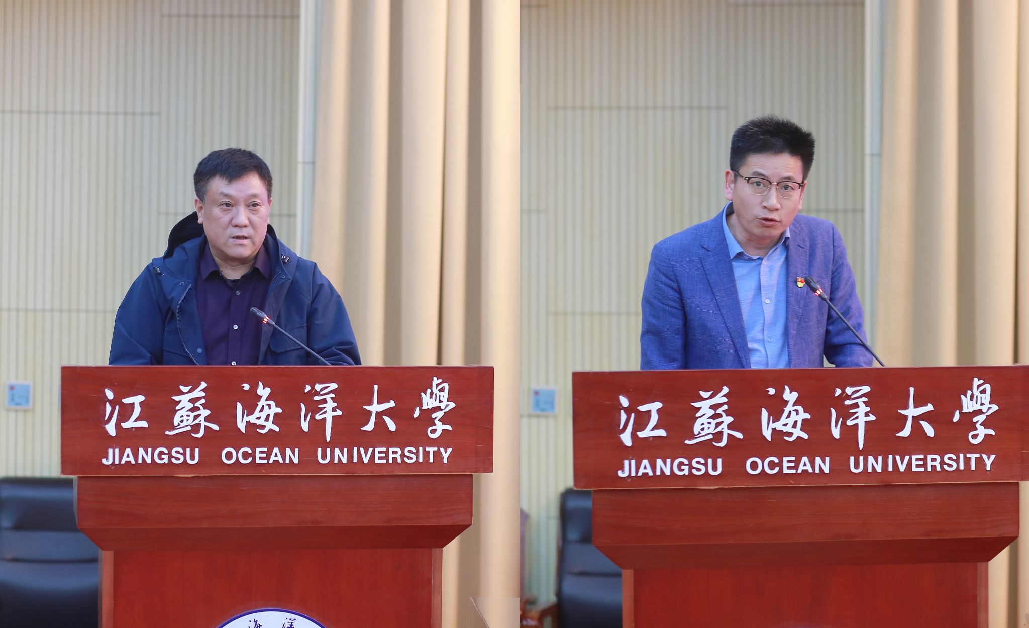 先进单位代表、国有资产与实验室管理处丁兆奎,先进个人代表、海洋技术与测绘学院田扬启,分别在会上作交流发言。