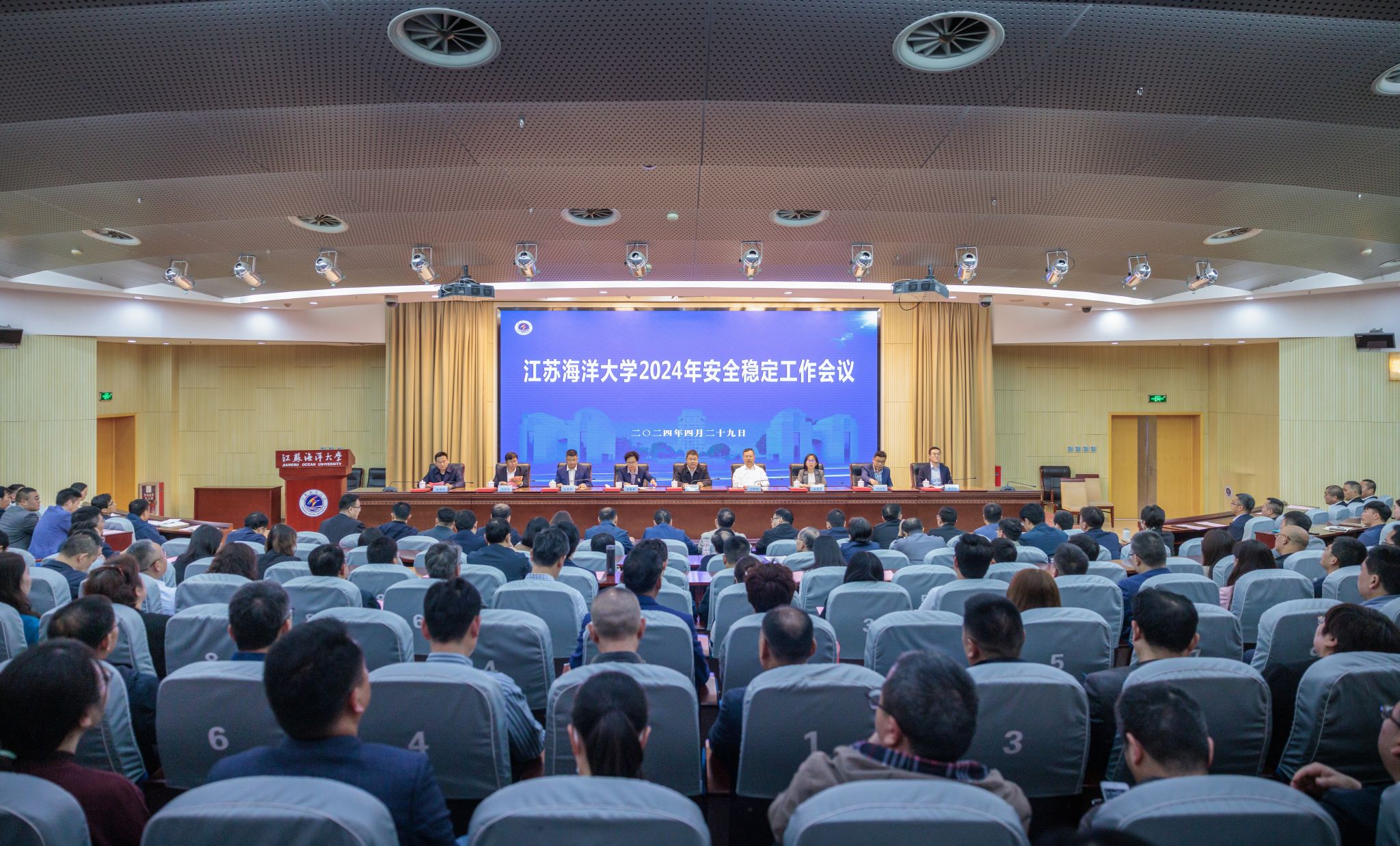 4月29日下午,我校在会议中心黄海厅召开2024年安全稳定工作会议,深入学习贯彻习近平总书记关于安全生产重要论述和对江苏安全生产工作的重要指示批示精神,落实全国安全生产电视电话会议部署和省市相关要求,总结2023年安全稳定工作,布置2024年安全稳定重点工作。全体在连校领导出席会议。党委副书记李梅英主持会议。