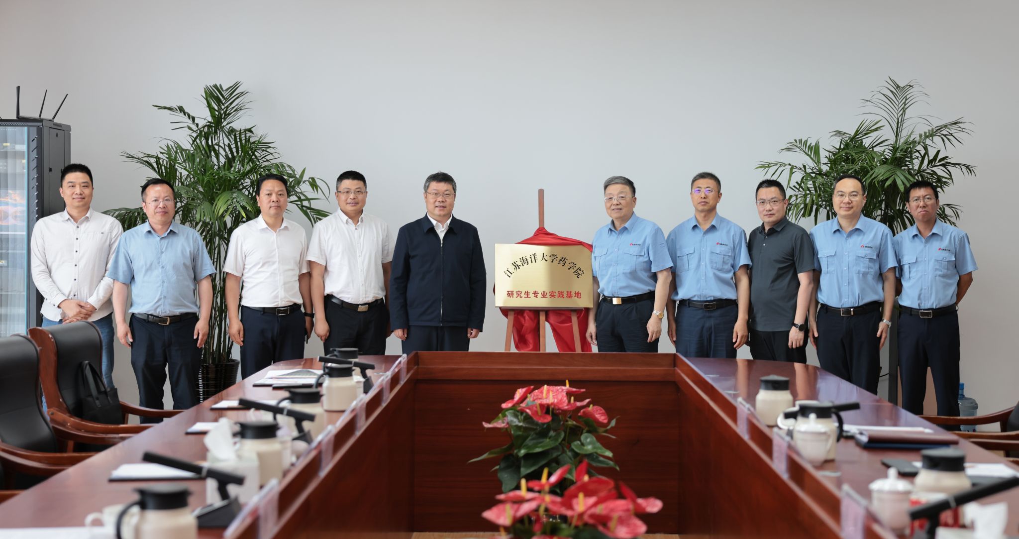 会后,许峰书记与肖伟院士共同为“江苏海洋大学药学院研究生专业实践基地”揭牌。揭牌仪式后,双方共同参观公司展厅、中药数字化提取精制工厂以及部分产品等,并就开展科研攻关、研究生培养、博士点培育建设等方面开展深入交流。