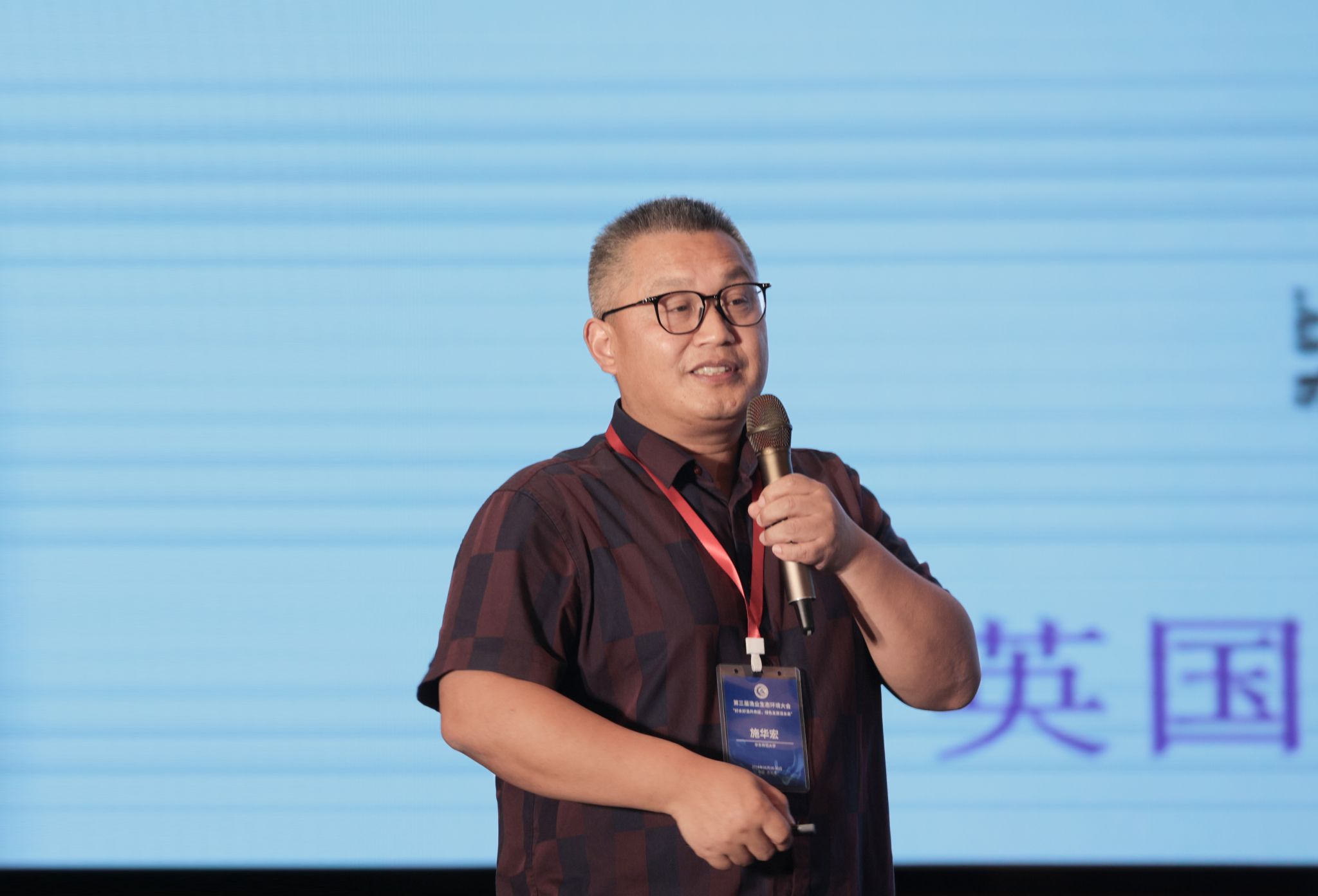 华东师范大学施华宏教授作“海洋养殖区泡沫塑料污染与防控”主旨报告。我校副校长申欣、徐军田主持了大会主旨报告环节。