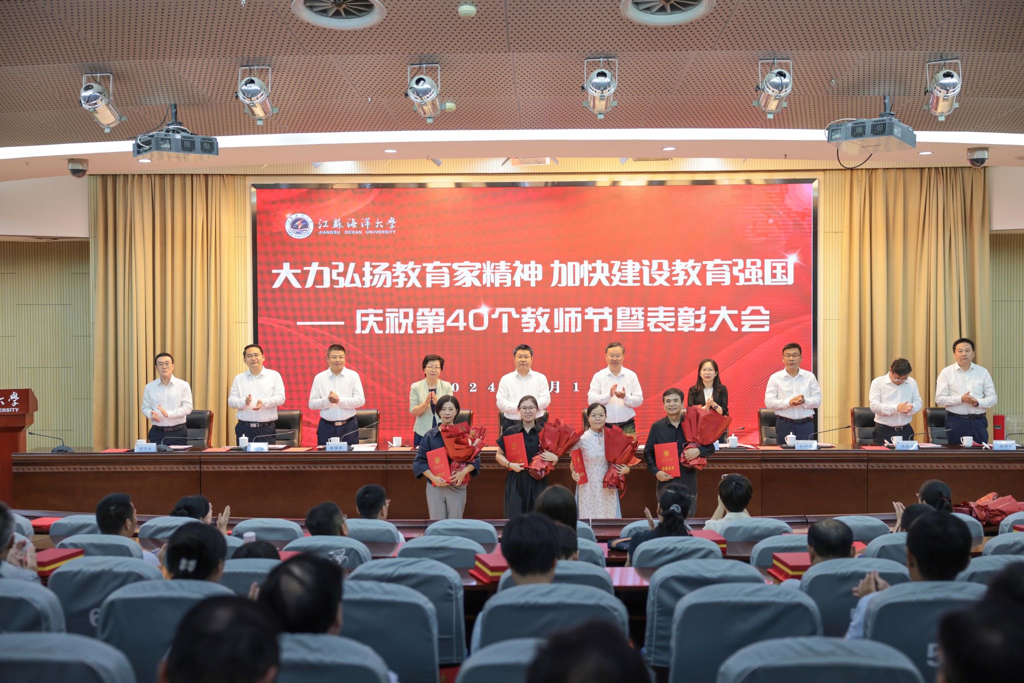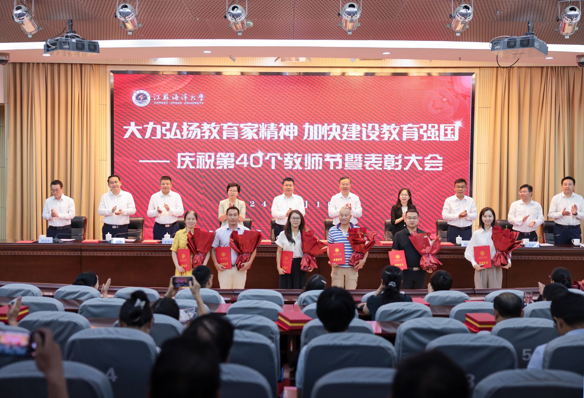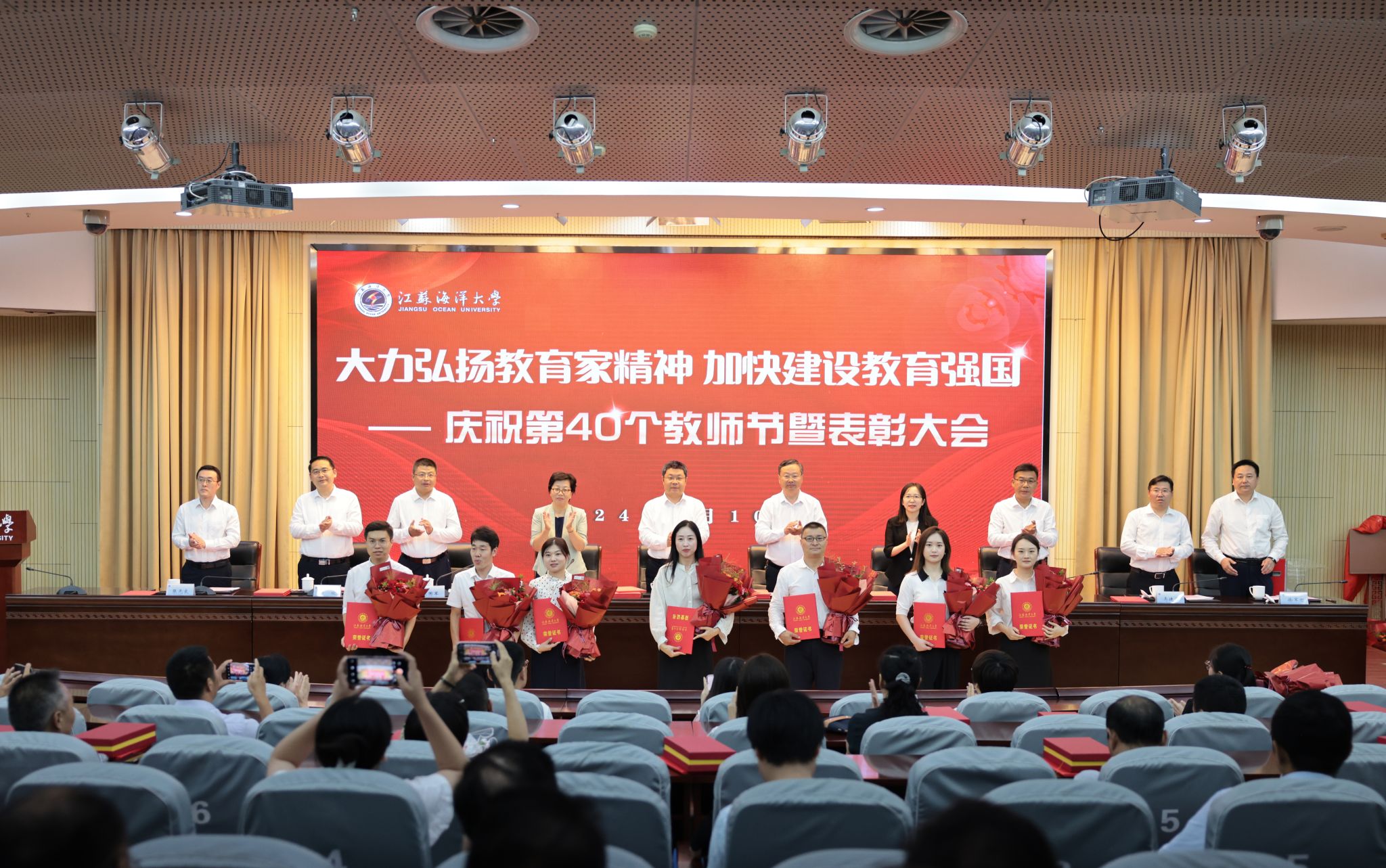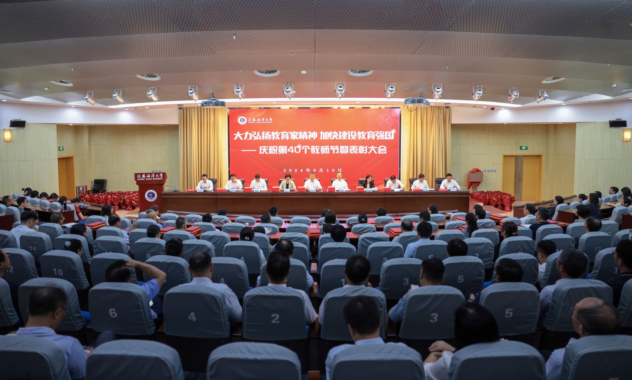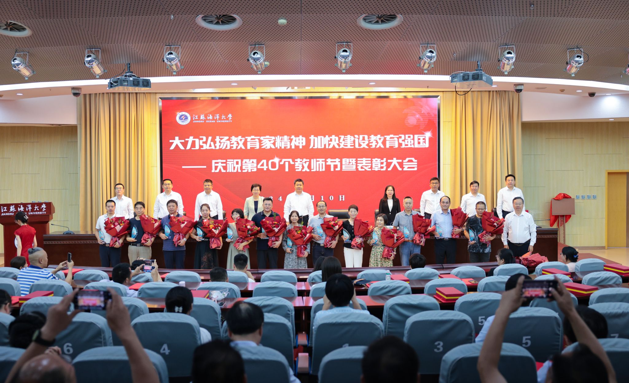 铸就国之栋梁,谱写强国华章。9月10日下午,我校举行庆祝第40个教师节暨表彰大会。校党委书记许峰,校长宁晓明,副校长金芙蓉、朱国军、郑利军、申欣、马廷淮、张元良、徐军田出席表彰大会。表彰大会由党委副书记李梅英主持。各单位(部门)主要负责人、受表彰人员、从教满30周年教师代表、新入职教师代表和学生代表参加大会。江海大师生欢聚一堂,共同分享节日的喜悦,感受身为教师的荣光。