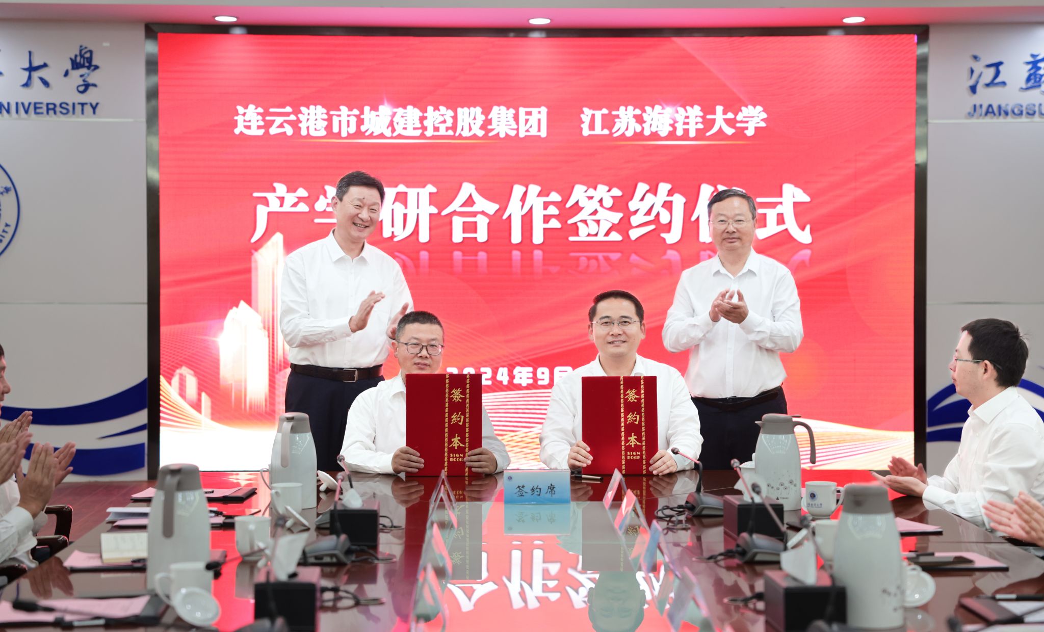 9月11日下午,我校与连云港市城建控股集团有限公司产学研合作协议签订仪式在会议中心东海厅举行。我校校长宁晓明、副校长申欣,市城建控股集团总经理张永波、副总经理翟晓东、李广春出席。我校科学技术处处长戴红伟主持签约仪式。
