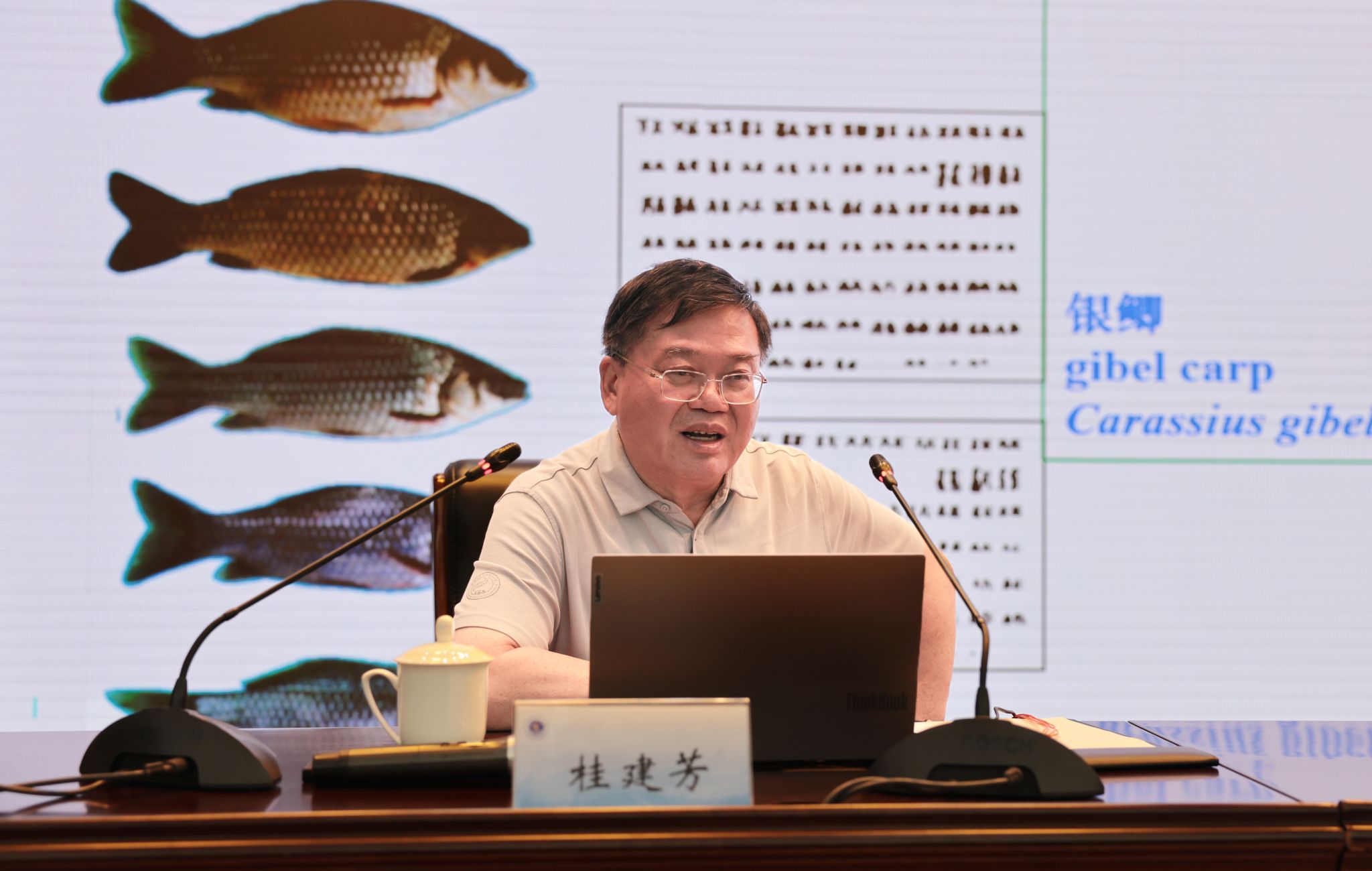 桂建芳院士从多倍体银鲫的演化、鲫鱼无刺性状的解析、金鱼龙睛性状的挖掘等五个方面阐述了精准育种研究取得的突破。桂建芳院士团队找到了控制肌间刺发育的关键基因,通过精准的基因编辑技术,创制出了无肌间刺的银鲫突变体。桂建芳院士介绍了其团队首次提出双三倍体的概念并成功解析了双三倍体银鲫基因组,为单性多倍体脊椎动物生殖成功的演化机制、促进银鲫精准育种提供了理论和技术支持,为现今的银鲫遗传育种创造出丰富的种质资源,提出基于倍性改变及生殖方式转换创制基因组重构的合成多倍体新技术。他还介绍了其团队关于观赏金鱼龙睛表型的研究,建立了基于高效繁育、基因编辑、雌核生殖、性控育种的金鱼精准分子设计育种生物技术路线。