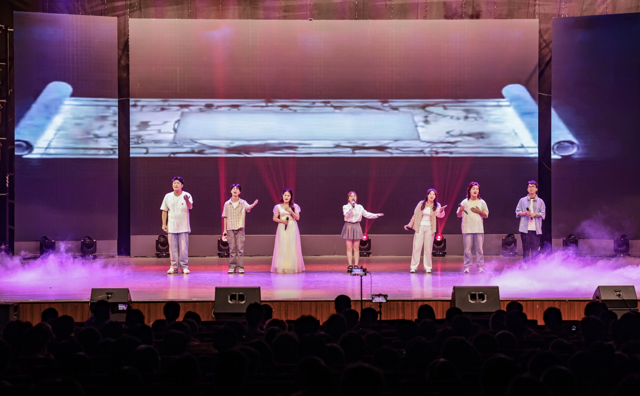 这堂大课共分为《坚守初心》《改革创新》《强国复兴》三个篇章,以3名青年教师思政主题宣讲开篇,将歌曲、舞蹈、朗诵、情景剧与党的创新理论宣讲相融合,激昂奋进的旋律、引人深思的歌词、感人至深的故事、铿锵有力的舞蹈,引领现场师生跨越历史岁月与信仰对话,在可听、可见、可感的“音乐思政课”中,感受时代脉搏,坚定理想信念,在阔步新征程上挺膺担当、至诚报国。