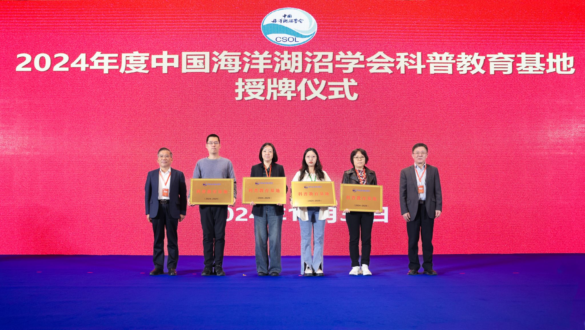 谷孝鸿、金显仕为中国海洋大学海洋气象科普教育基地等4家获授2024-2029年“中国海洋湖沼学会科普教育基地”的依托单位代表颁发牌匾。