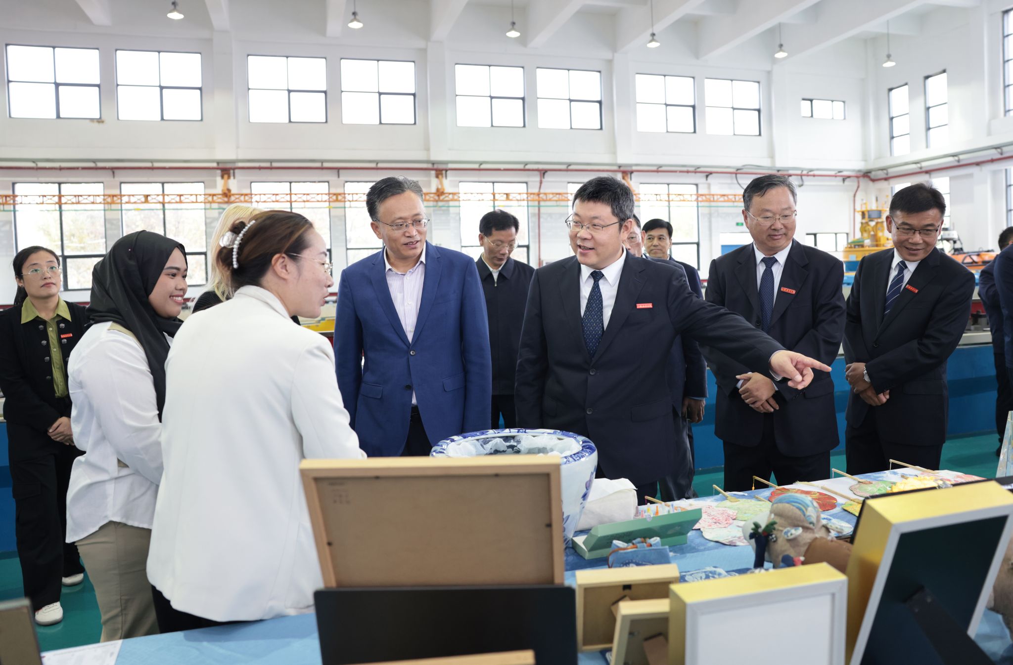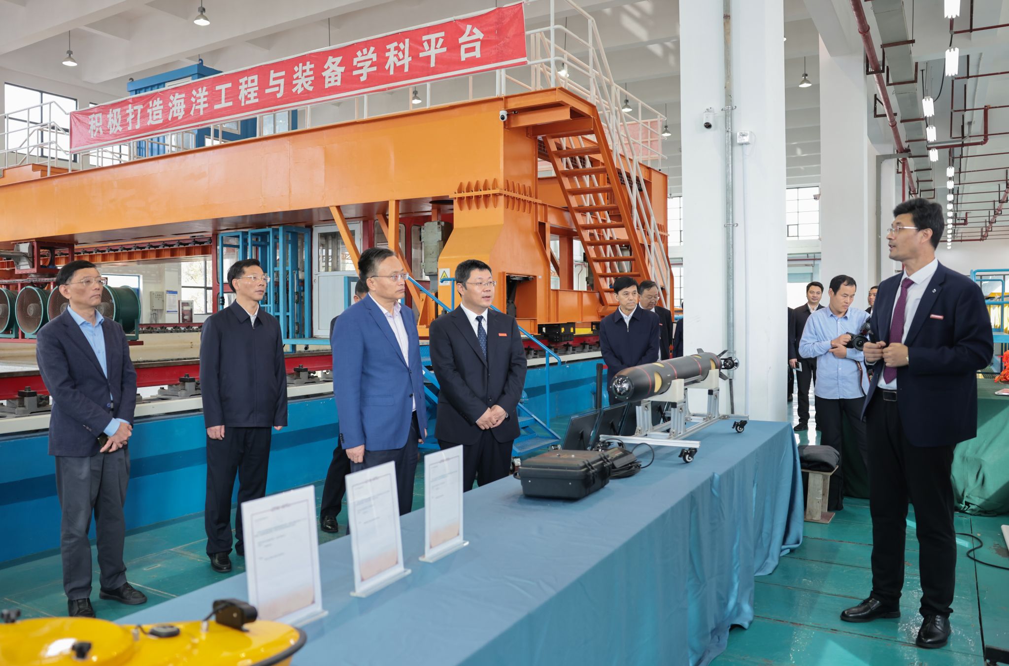 在学校海洋工程技术研究中心,胡广杰一行实地调研,与师生代表面对面交流,详细了解了学校海洋科学与技术、海洋资源与环境、海洋工程与装备、海洋经济与文化、海洋生物与医药等领域取得的技术成果,查阅了统战工作理论研究成果,体验了融入海洋文化元素的艺术设计成果及产品。