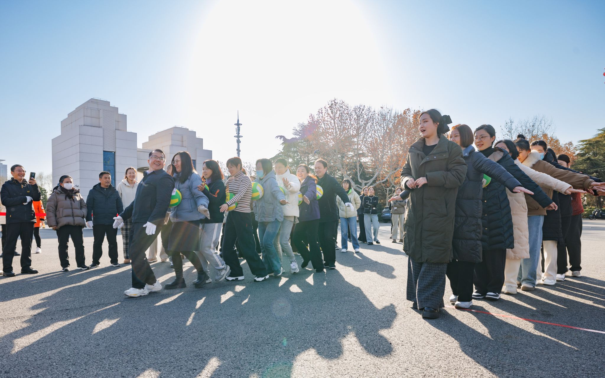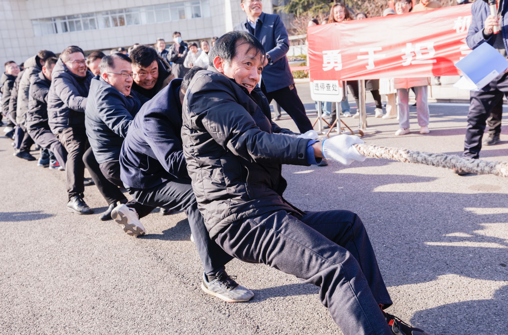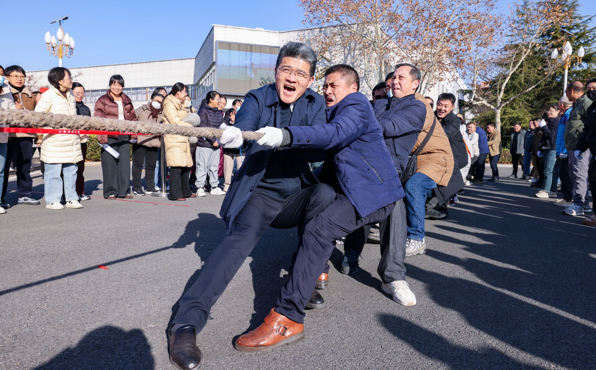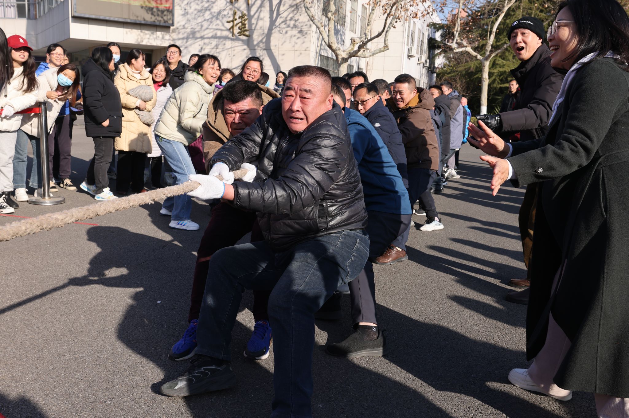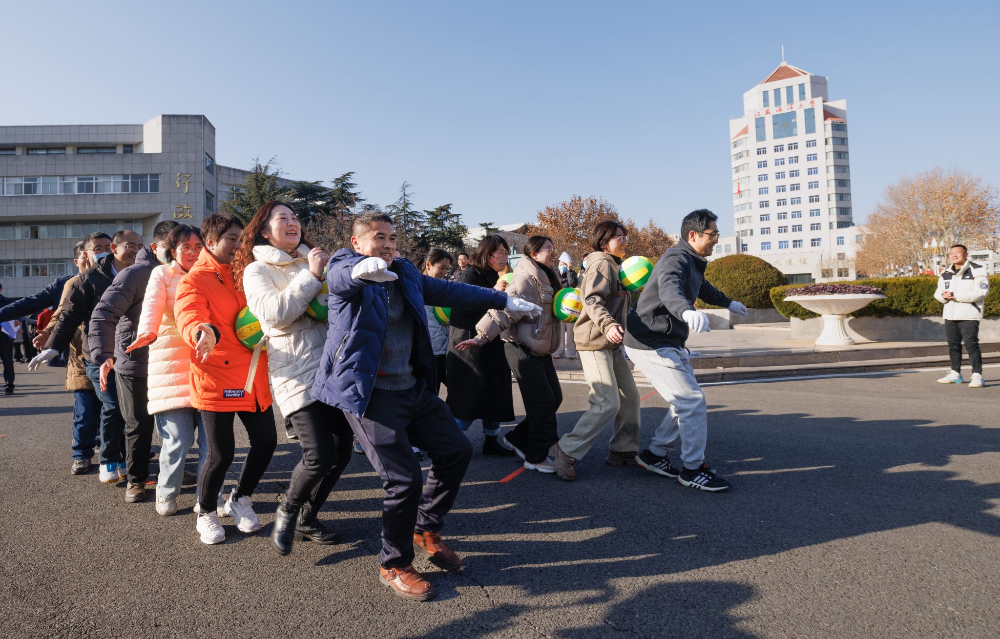 为进一步丰富教职工的业余文化生活,增强体质,促进交流,12月31日下午,由机关党委主办、机关分工会承办“勇于担当展作为 凝心聚力促发展”为主题的迎新年趣味运动会在文达楼广场举行。校党委书记许峰宣布比赛开始,并担任拔河比赛总裁判。校党委副书记李梅英主持活动并讲话。