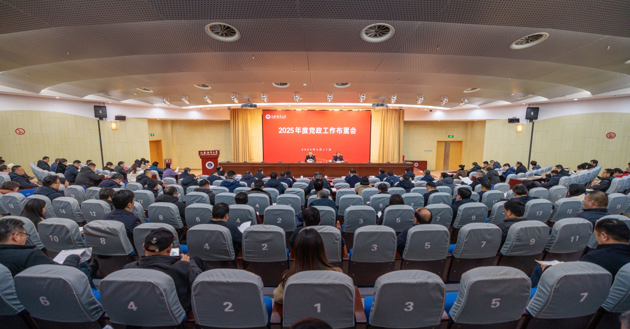 2月17日下午,我校在会议中心黄海厅召开2025年度党政工作布置会。校党委书记许峰主持会议并讲话。校长汤建回顾总结了学校2024年度工作,并对2025年工作进行了全面部署。全体校领导出席会议。全校中层干部参加会议。
