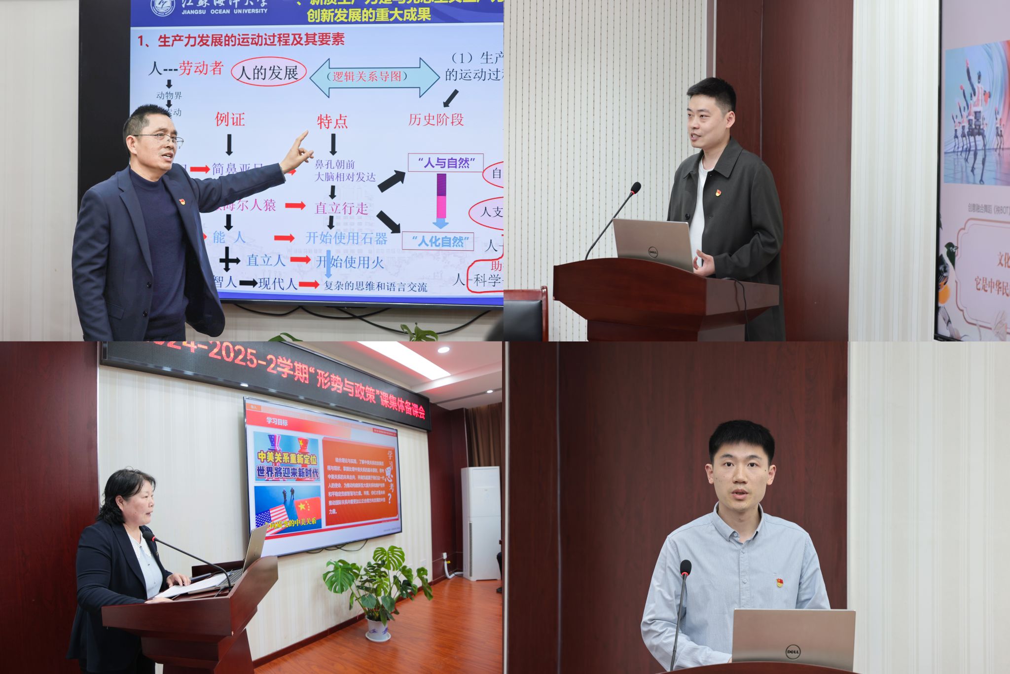 此次备课会以专题教学说课形式进行,马克思主义学院宋忠好、朱凌云、王泉月、罗睿4位教师分别围绕“新质生产力与新型生产关系”“中美大国博弈”“社会主义文化繁荣兴盛”“纪念世界反法西斯战争胜利80周年”等主题作说课展示。